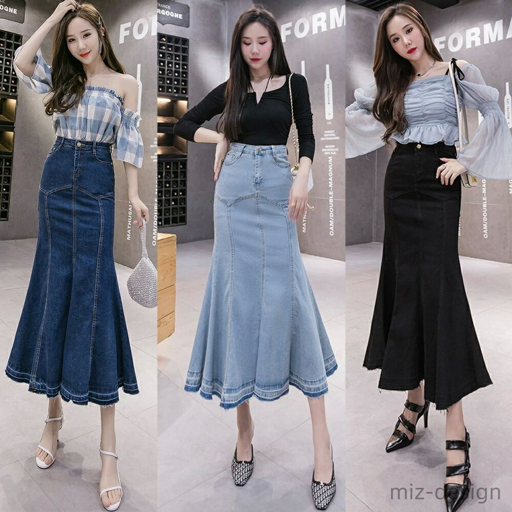 マーメイド スカート 大きいサイズ フリル ロング おしゃれ かわいい レディース ボトムス デニム マキシ丈 ミディアム丈 きれい
