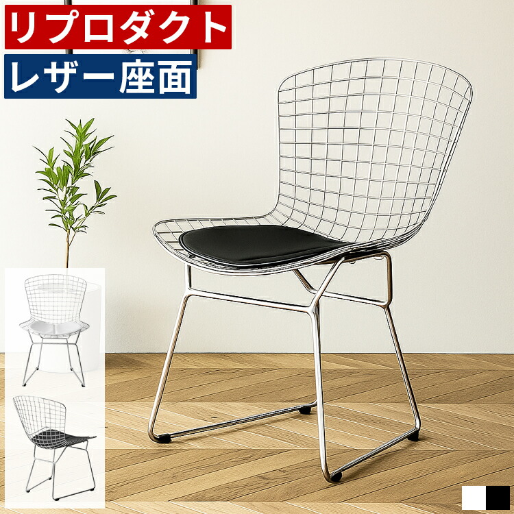 ワイヤーチェア リプロダクト デザイナーズチェア ダイニングチェア レザー座面 おしゃれ 北欧 モダン 椅子 スチール製 シルバー ブラック ホワイト デスクチェア リビングチェア パソ カフェチェア