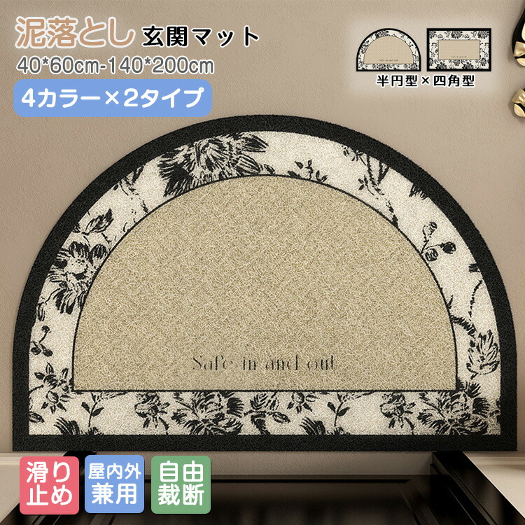 半円型/角型選べる 事務所 オフィスなどの出入り口や玄関におすすめ! 大判 足拭きマット ベランダ キッチン リビング ラグマット 滑りにくい モダン フリーカット ラバー サロン