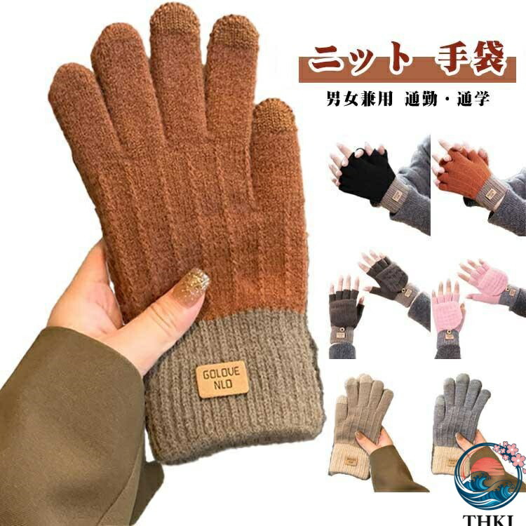 ニット 手袋 メンズ レディース 手ぶくろ 暖かい 防風 滑り止め 防寒 保温 おしゃれ 毛糸 五本指 スマートフォン対応 男女兼用 防寒手袋 指切り
