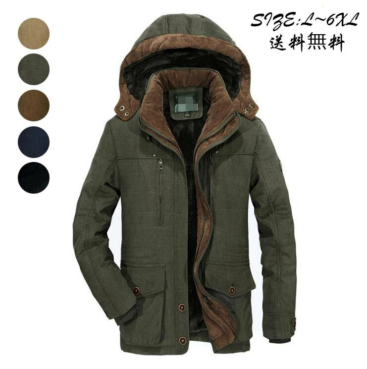 メンズ裏起毛コート ロングコート 防寒服 厚手 ミリタリーコート 冬ジャケット 冬着 メンズファション カジュアル 普段着 大きいサイズ 暖かい ジャンパー カーキ グリーン ネイビー M ブラック