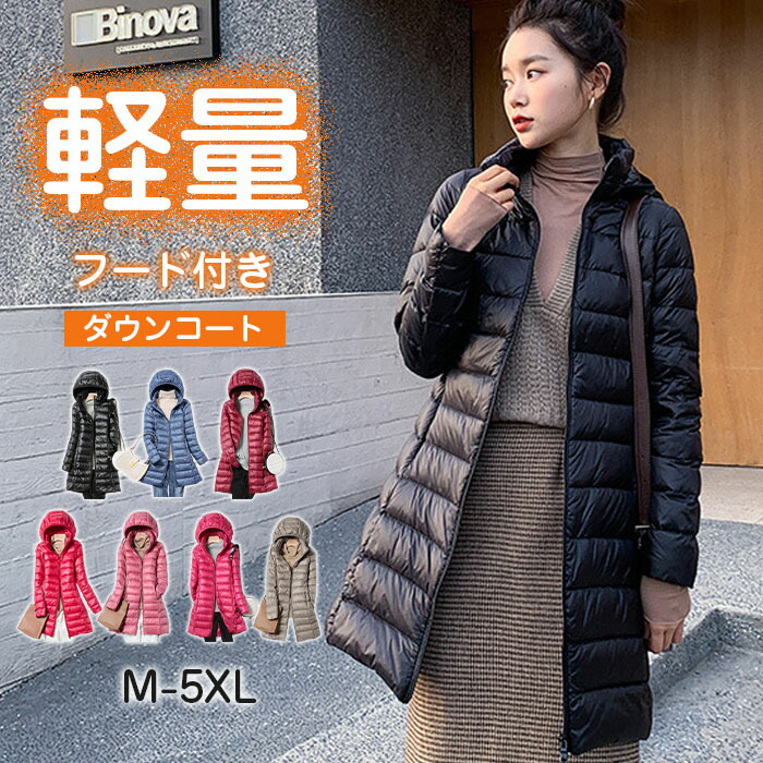 軽量 ダウンコート ロング丈 フード付き ポケッタブル 2L キルティングコート ホワイトダックダウン 薄型 ダウンジャケット 防寒コート レディース 大きい チェスターコート