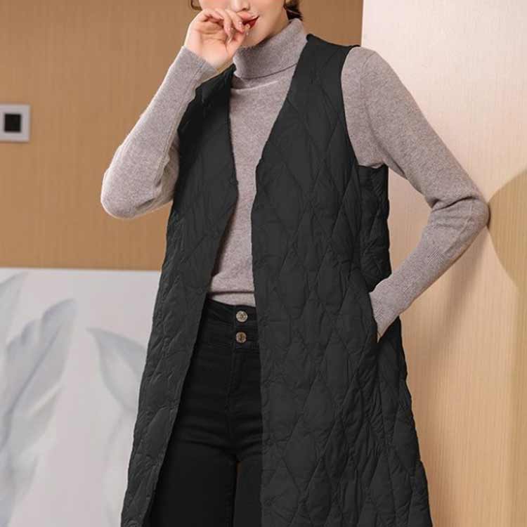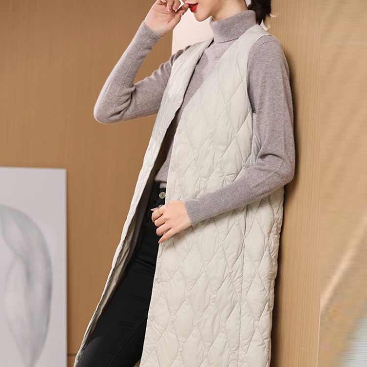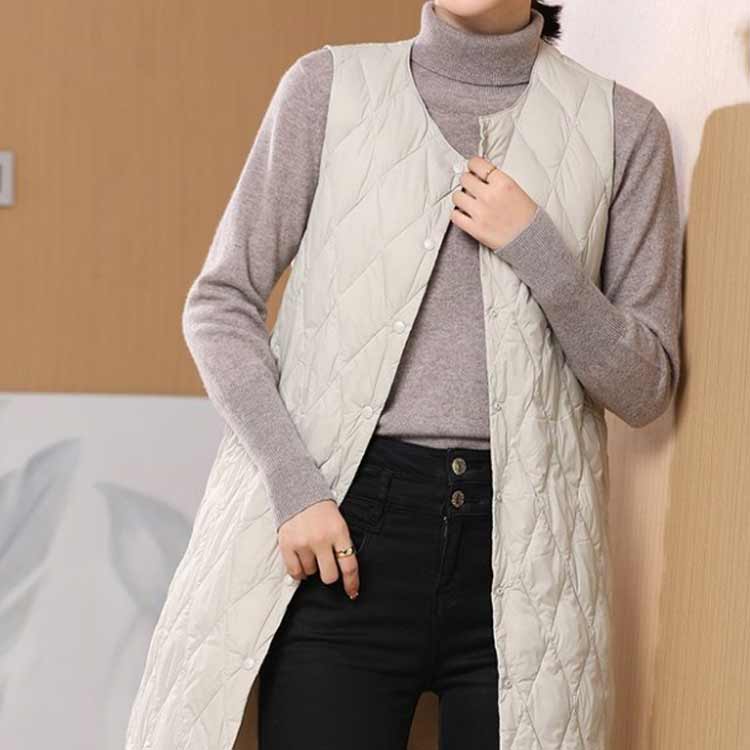 羽織り ノーカラー ダウンコート ロン レディースファッション 早い者勝ち ブラック オフホワイト ベージュ S M L XL 2XL