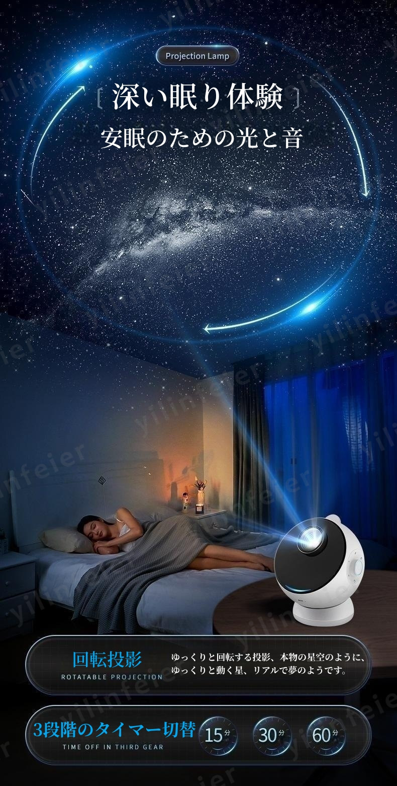 家庭用 プラネタリウム 室内スタープロジェクターライト 安眠 Bluetooth5.0 USB タイマー機能付き 輝度 子供 寝かしつけ用 ロマンチック雰囲気作り 音量調整可
