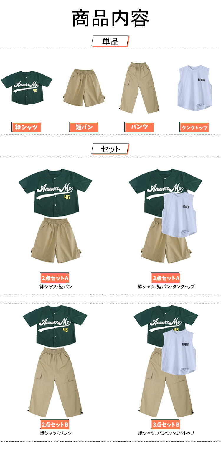 グリーン キッズ ダンス衣装 セットア キッズ ベビー マタニティ 新登場! タンクトップ 短パン パンツ 緑シャツ 2点セットA 2点セットB 3点セットA 3点セットB 110 120 130 140 150 160 170 180