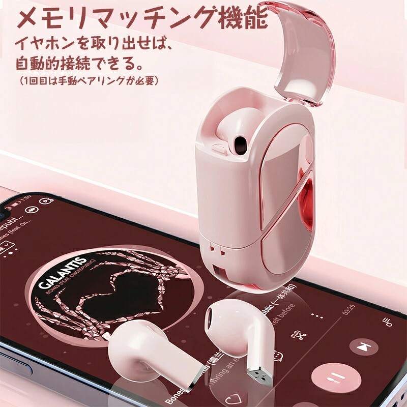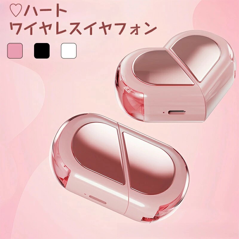 ハート型 TWS イヤホン ワイヤレス ピンク ブラック ホワイト