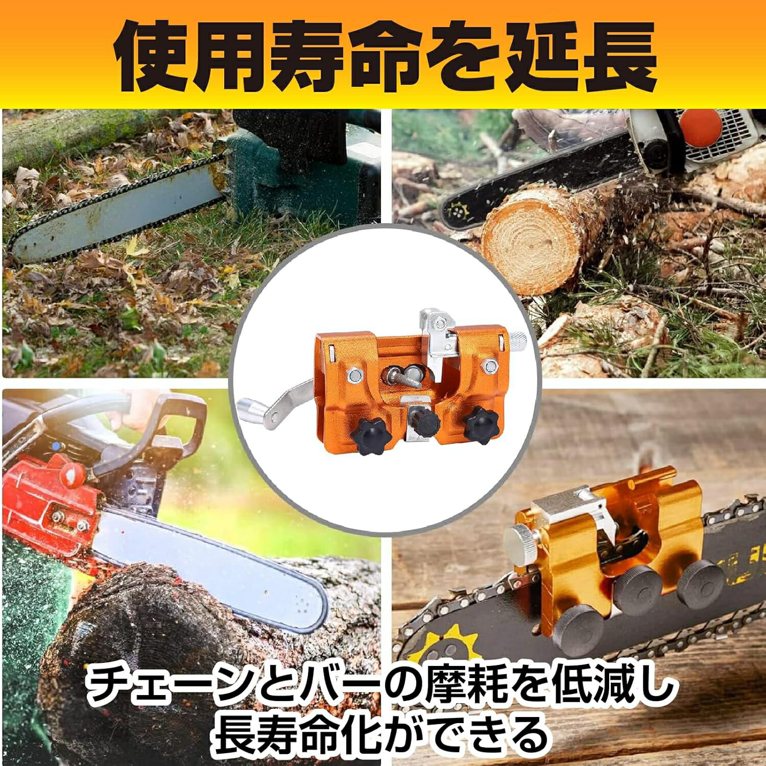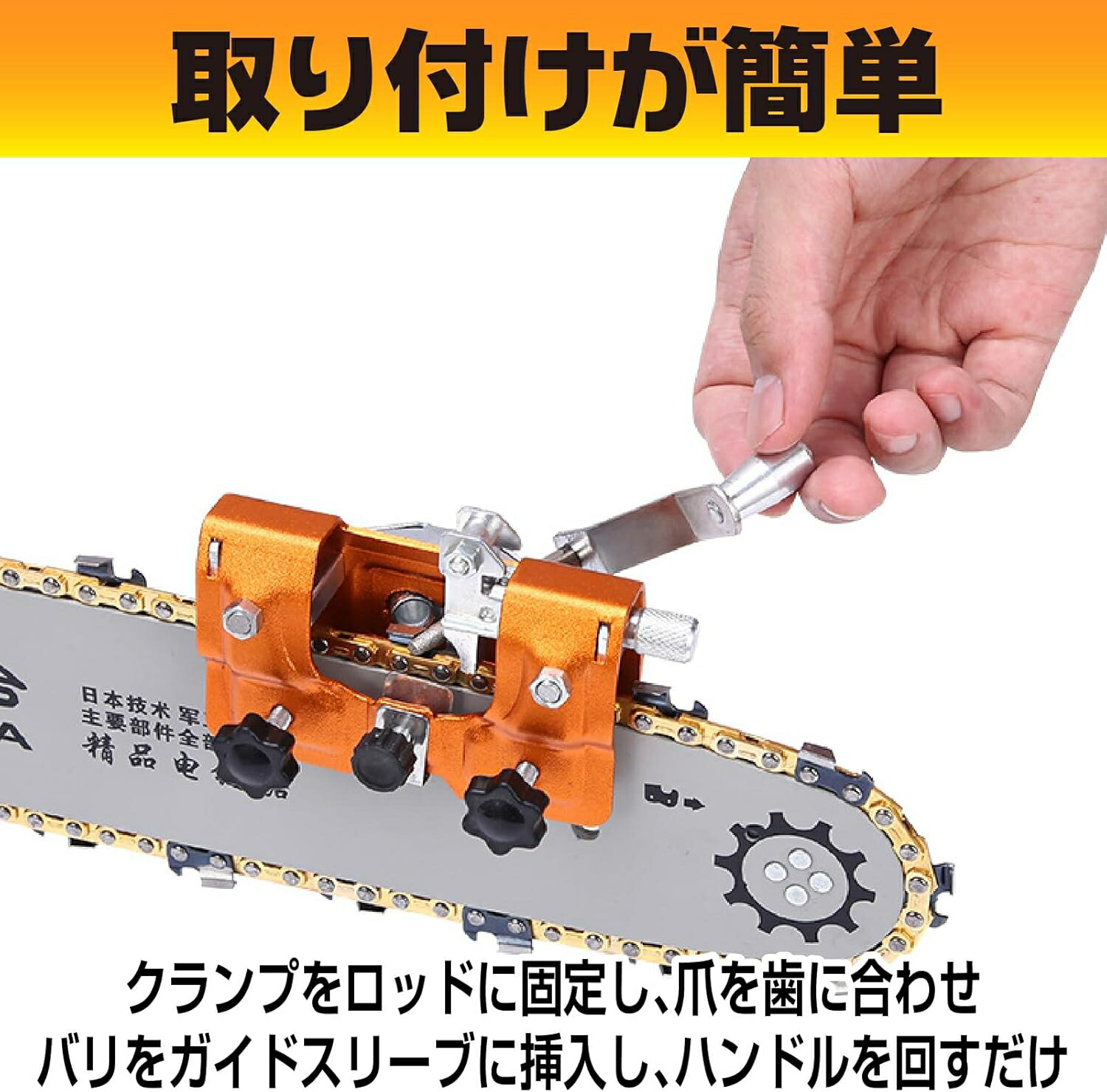 【多機能性とポータビリティ】: この目立て器はさまざまなタイプのチェーンソーに適しており、いつでも取り付けて使用することができます。ポータブルな設計により、短時間でチェーンを削ることができ、様々な場所での使用に適しています。