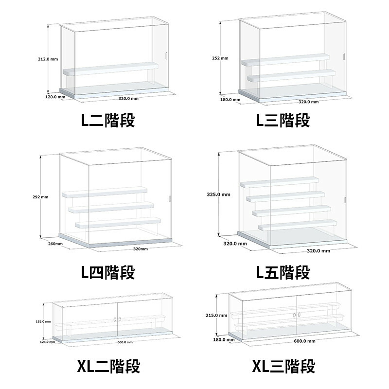 アクリルケース 透明 白 クリア フィ L二階段 L三階段 L四階段 L五階段 XL二階段 XL三階段