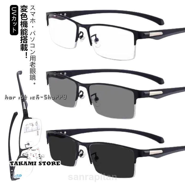メンズ メガネ レディース 遠近両用 累進多焦点レンズ 調光 シニアグラス サングラス ブルーライトカット 変色 紫外線カット uvカット 女 老眼鏡