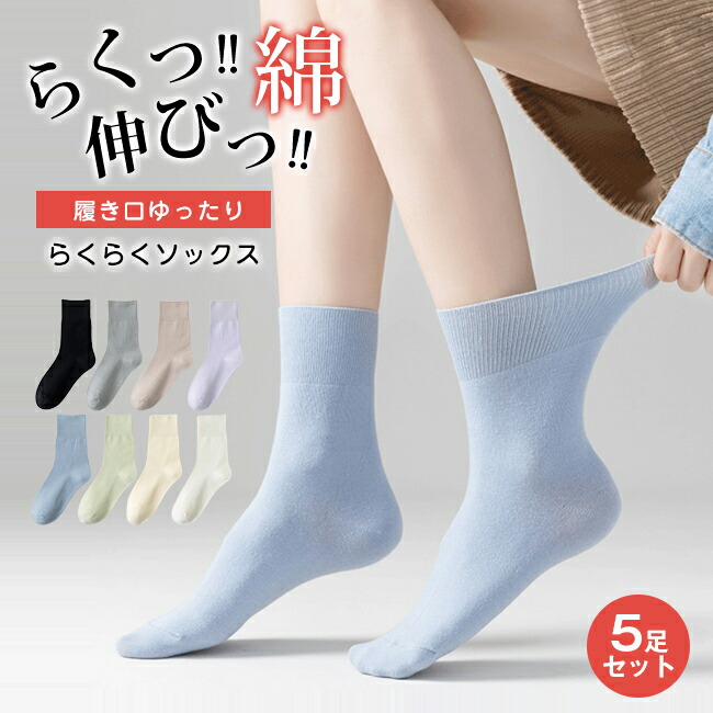 30%OFF 5足セット 10カラー選べる 履き口ゆったり らくらくソックス しめつけない 靴下 レディース コットン 綿 ゆる 抗菌 防臭 女性 ゆったり ゆるい ソックス 冷えとり 保湿 冷え対策