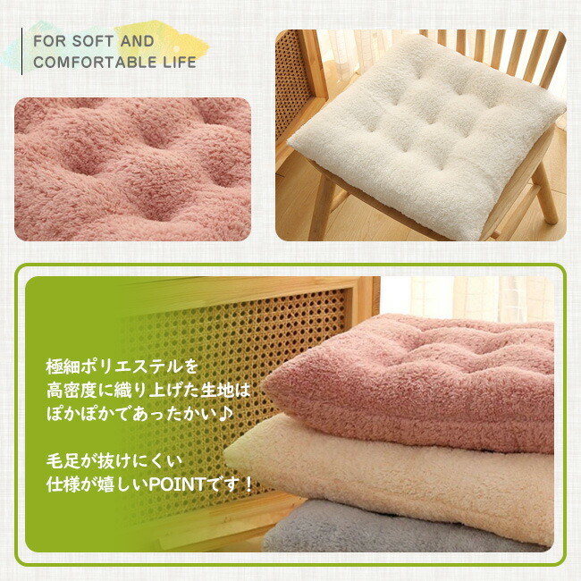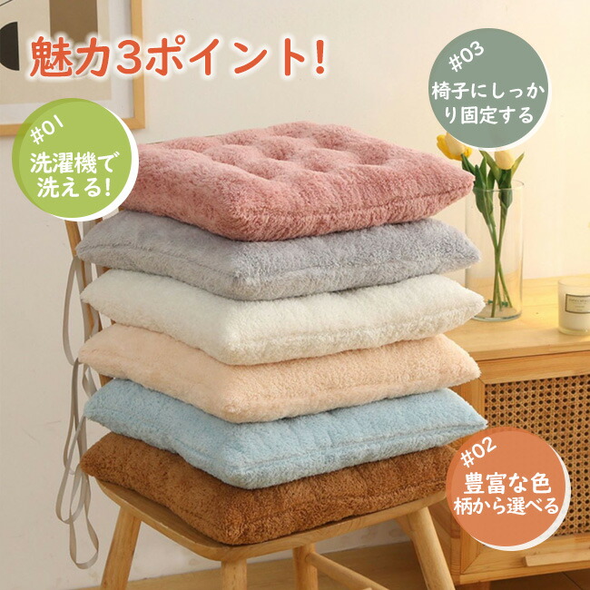 極厚 ふわふわ クッション おしゃれ 北欧 あったか イス 洗える座布団 椅子用 ダイニングチェア 座面 おすすめ シートクッション いす用 チェアパッド フェイクラビットファー 腰痛 チェ 滑り止め