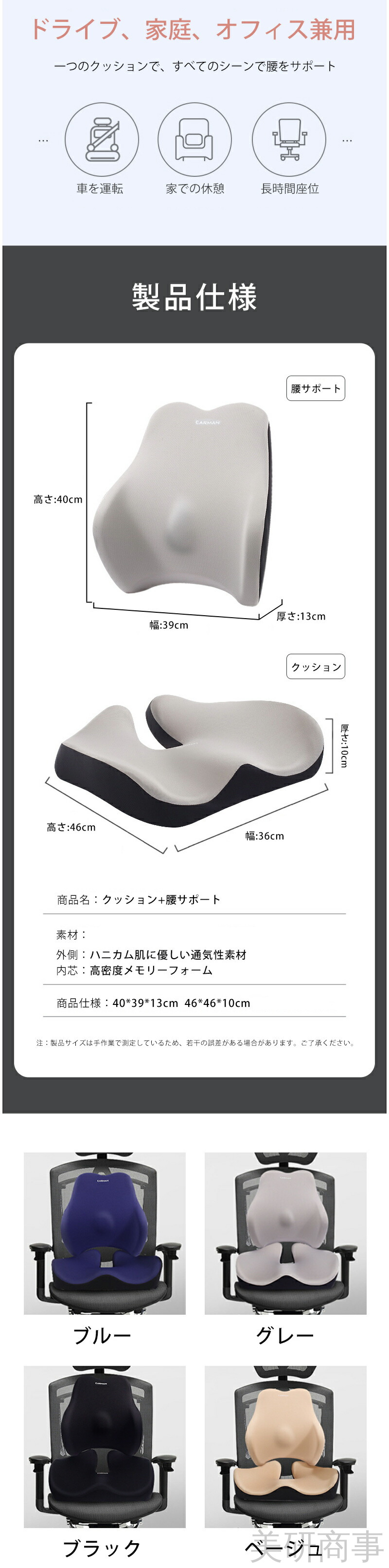 腰痛緩和 骨盤サポート 姿勢矯正クッシ ブルー グレー ブラック ベージュ ネイビー クラレット ブラウン コーヒー 座布団 腰用クッション 腰用クッション+座布団