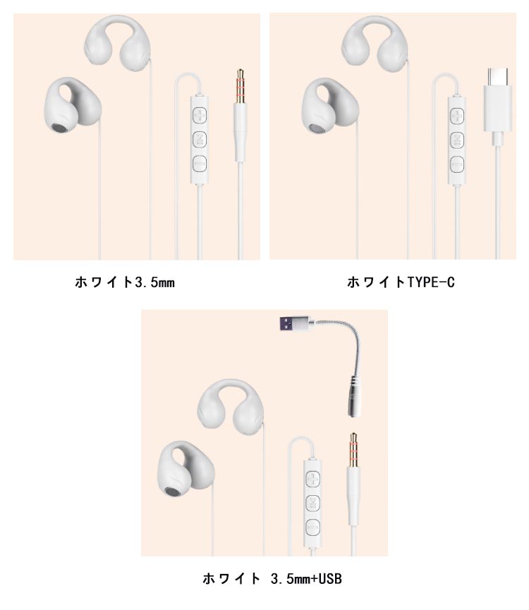 有線イヤホン イヤホン 蒸れない マイ ブラック ホワイト 3.5mm TYPE-C 3.5mm+USB