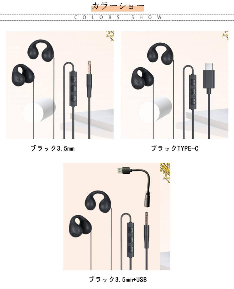 有線イヤホン イヤホン 蒸れない マイ ブラック ホワイト 3.5mm TYPE-C 3.5mm+USB