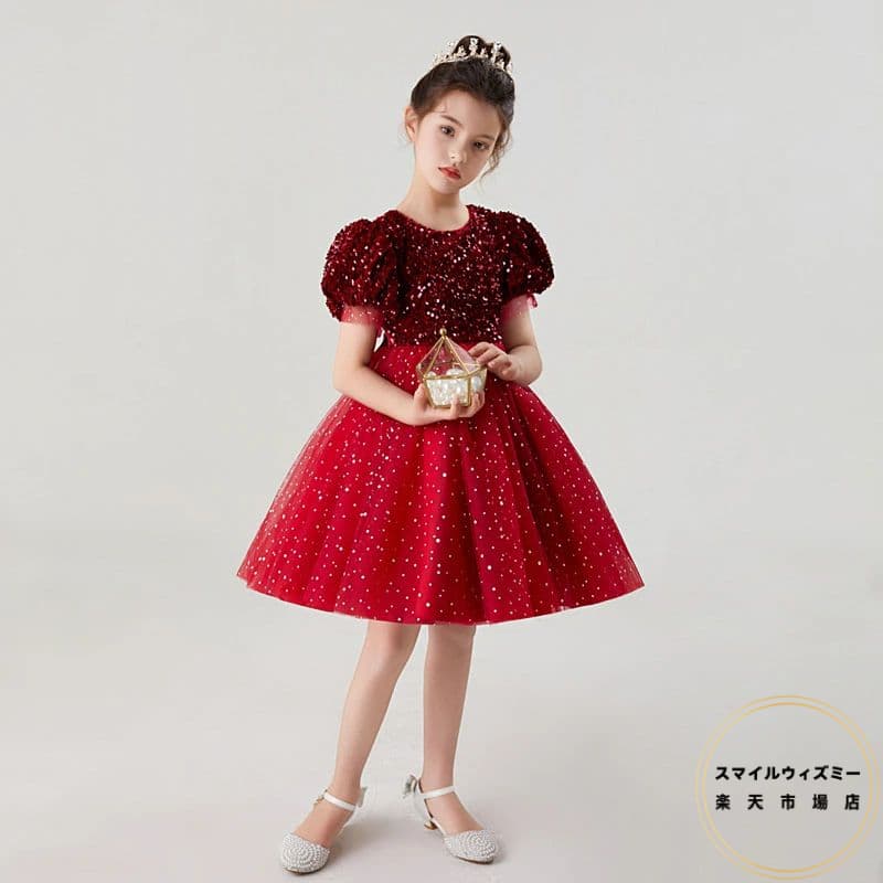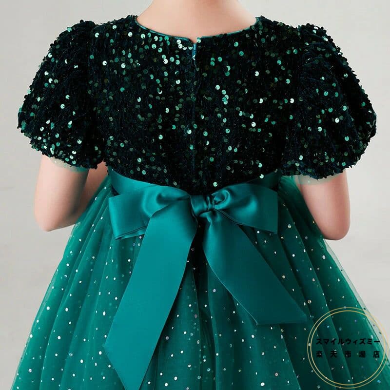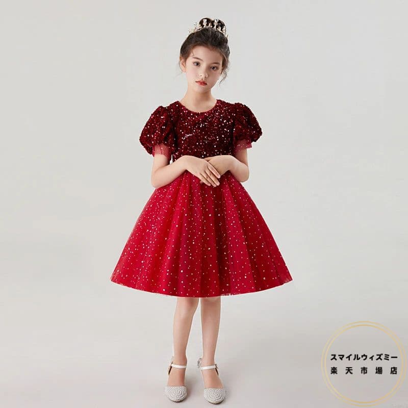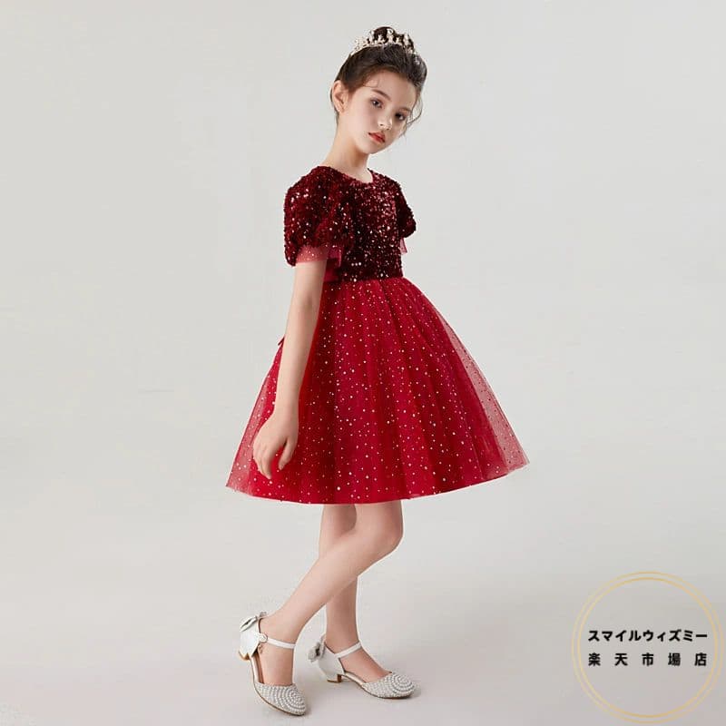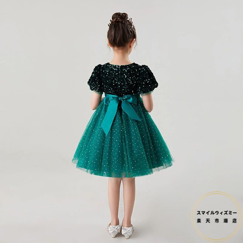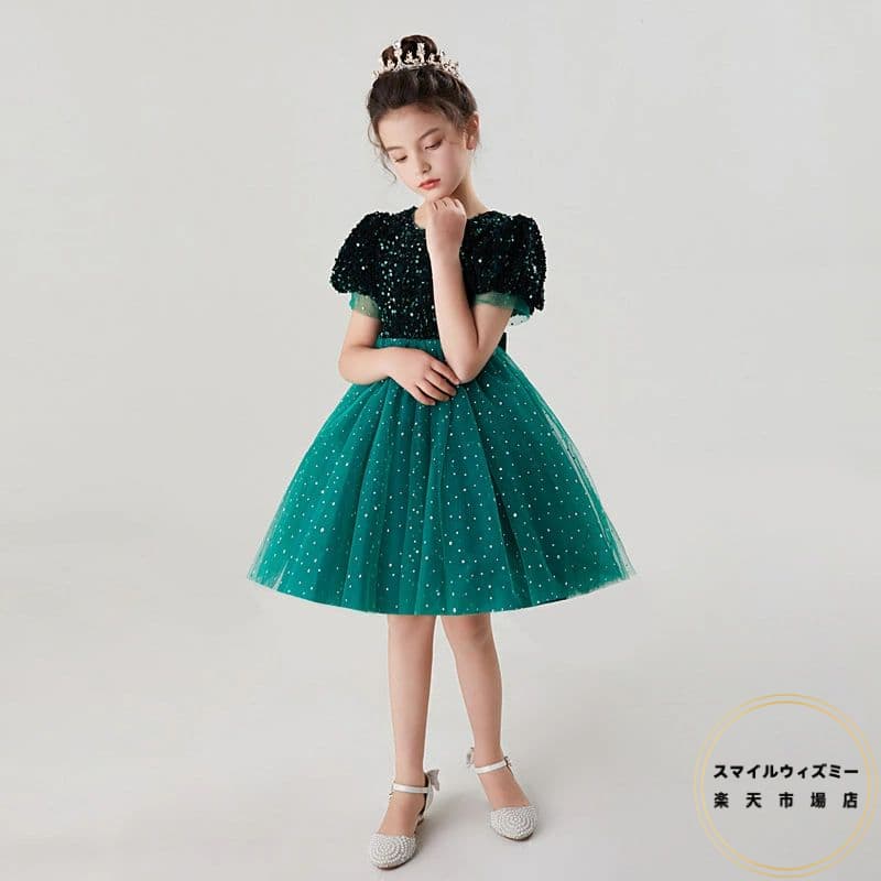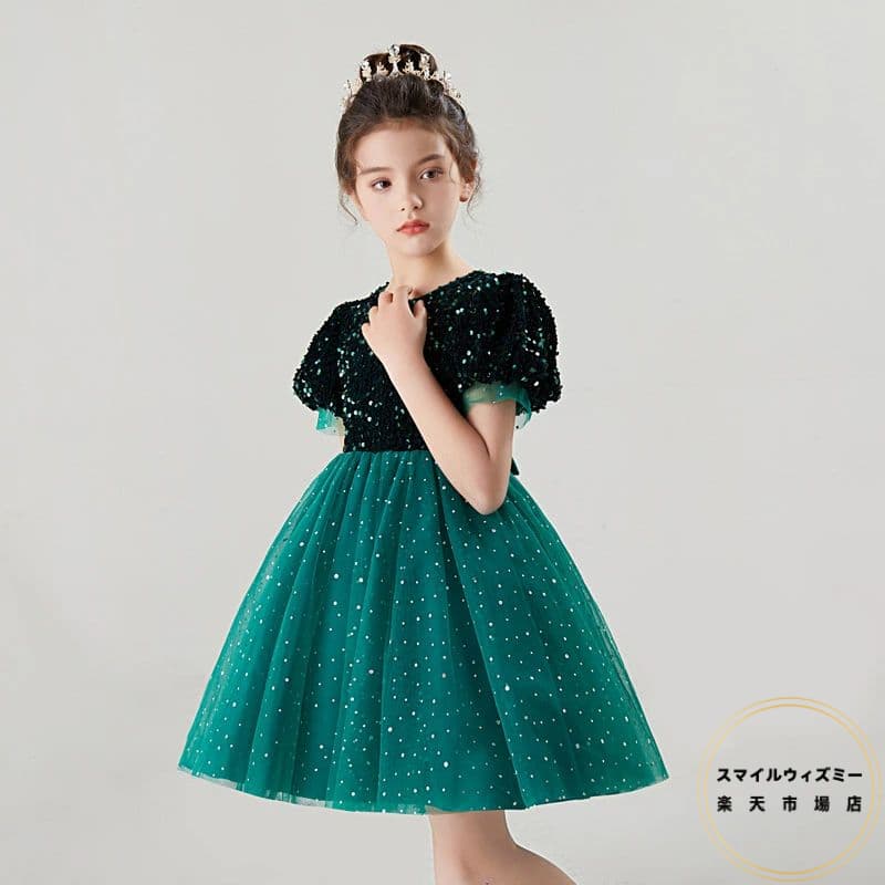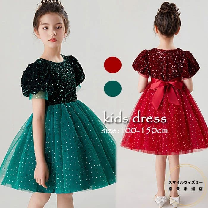 ピアノ発表会 子供ドレス 赤 グリーン 子供ドレス結婚式 ワンピース 女児 発表会 ドレス スパンコール きらきら キッズドレス 結婚式 チュール 子供 半袖 120