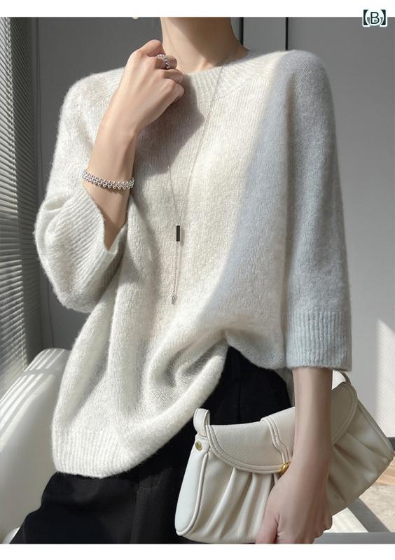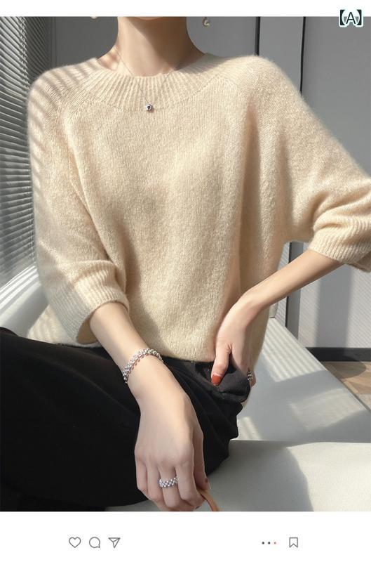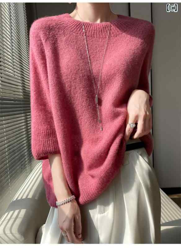 ニット レディース カシミヤ シルク A:半高襟原絨アイボリー B:半高襟ライトグレー C:半高襟野ばら D:緑梨