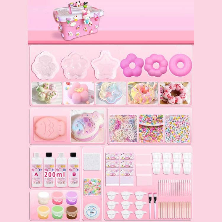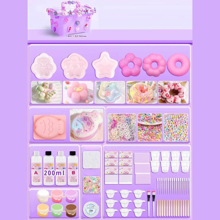 スクイーズ手作りキット 簡単 握る D おもちゃ ゲーム 新登場! ピンクセット(収納箱付) パープルセット(収納箱付)