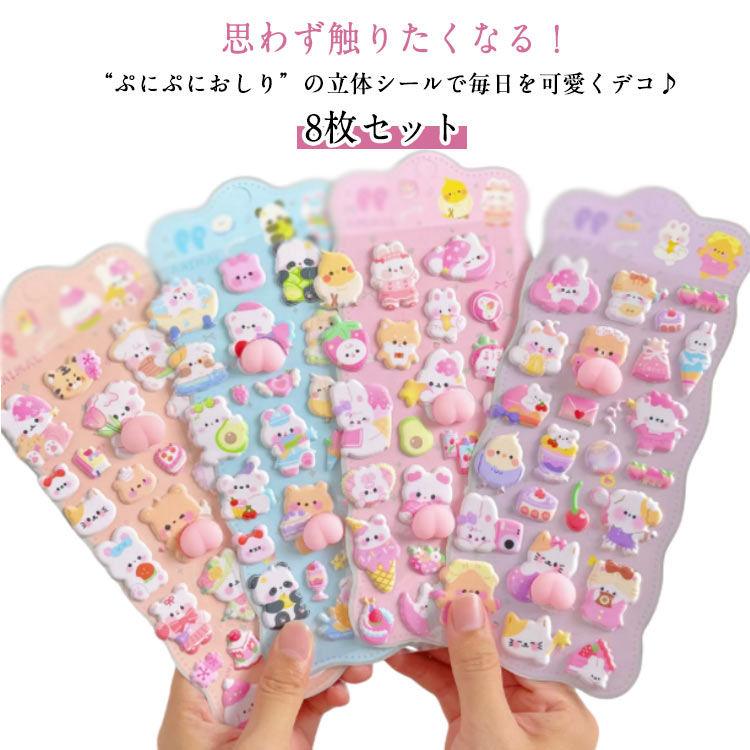 3D立体 シール 8枚入り ぷにぷに 日用品雑貨 文房具 手芸 早い者勝ち
