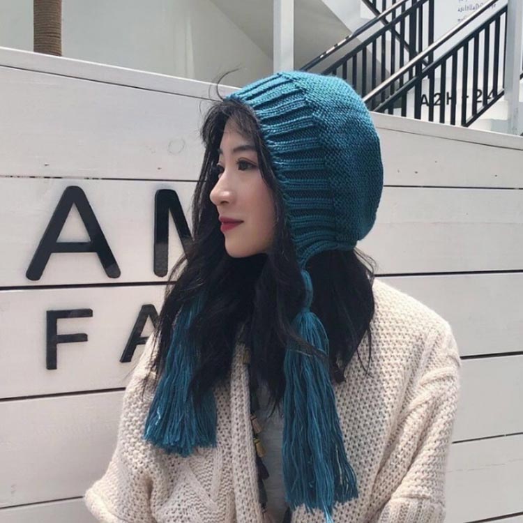 ニット帽 レディース 耳あて 揺れるタ バッグ 小物 ブランド雑貨 人気 ブルー ブラック ベージュ ライトレッド グレー