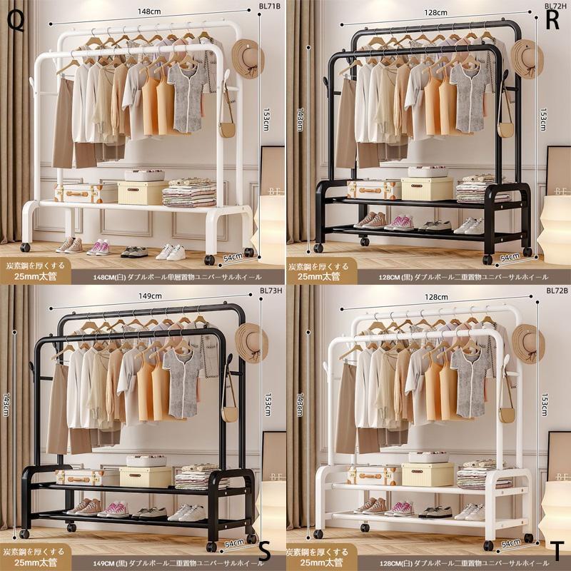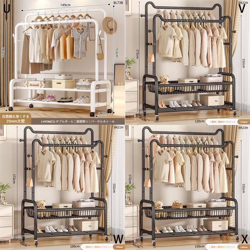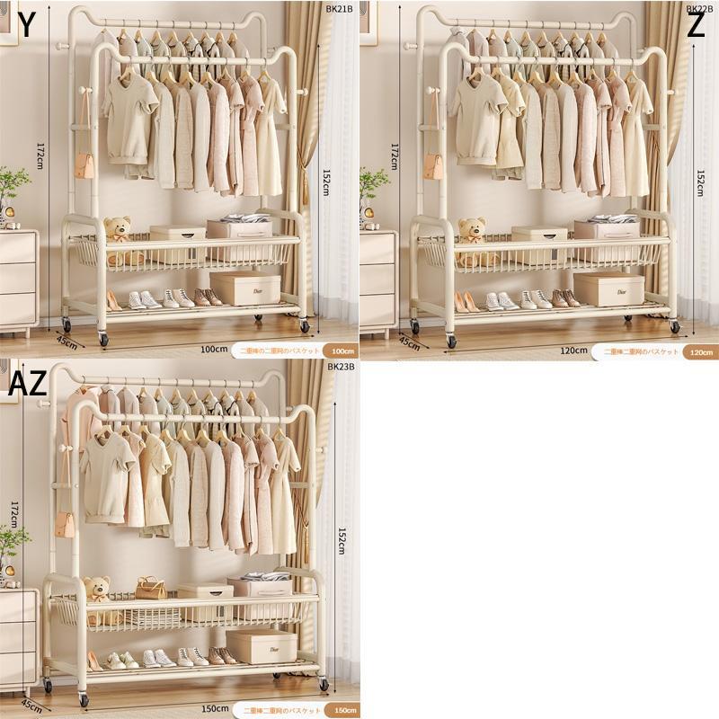 ハンガーラック おしゃれ 頑丈 キャスター付き パイプハンガー 衣類収納 洋服掛けラック 子供 洋服収納 梅雨対策 洗濯物落ち防止対策 室内干し 洗濯物