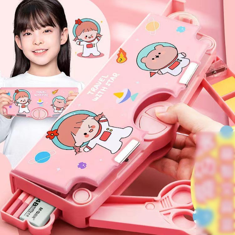 ペンケース 筆箱 両面開き ふでばこ 日用品雑貨 文房具 手芸 特集 宇宙飛行士 宇宙飛行士(ブラック) くま ユニコーン 恐竜 ねこ ガールズ 宇宙飛行士(ブルー1) 宇宙飛行士(ブルー2)
