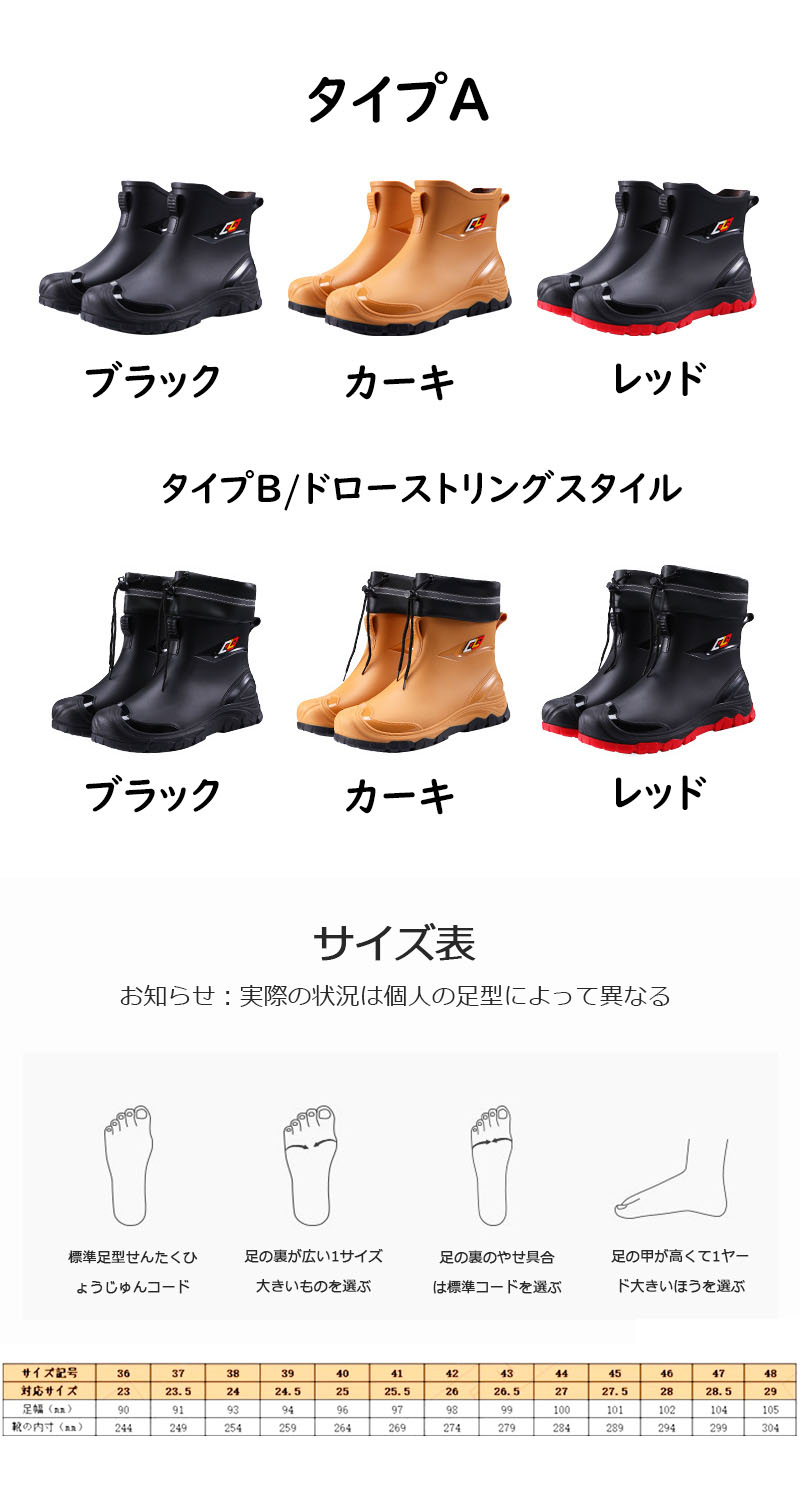 レインブーツ レインシューズ 長靴 レ 靴 早い者勝ち タイプA タイプB レッド カーキ ブラック