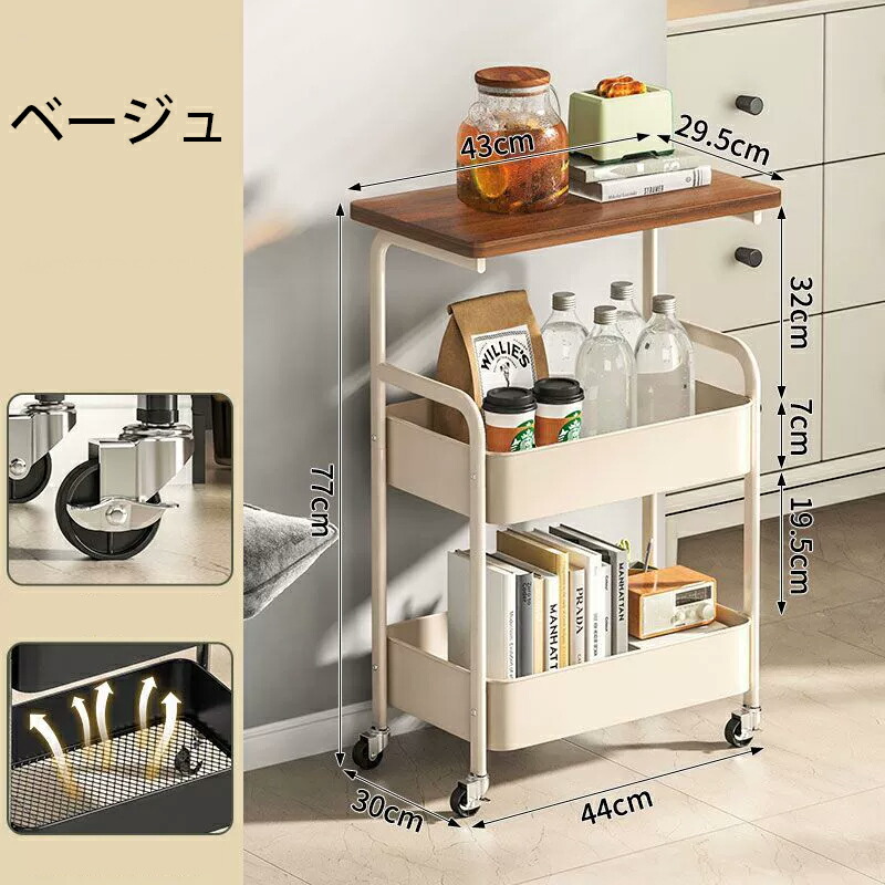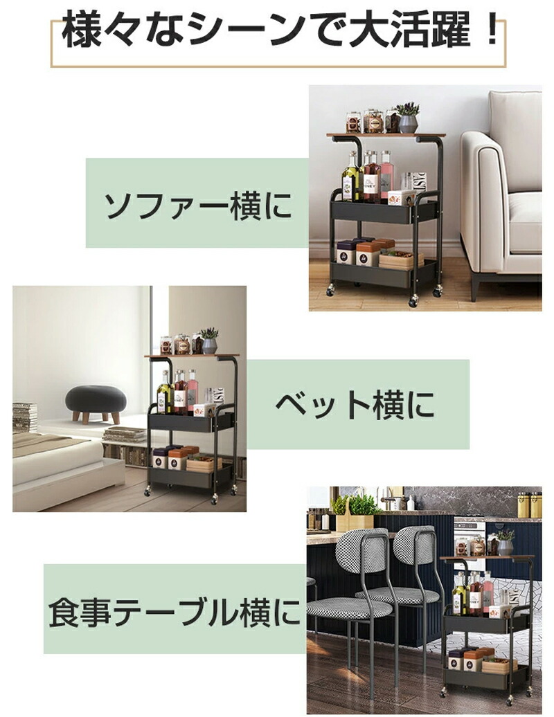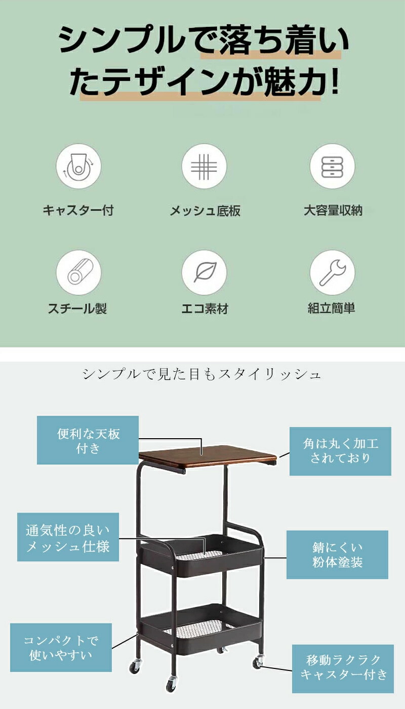 キッチンワゴン キャスター付き 天板付 ブラック ホワイト