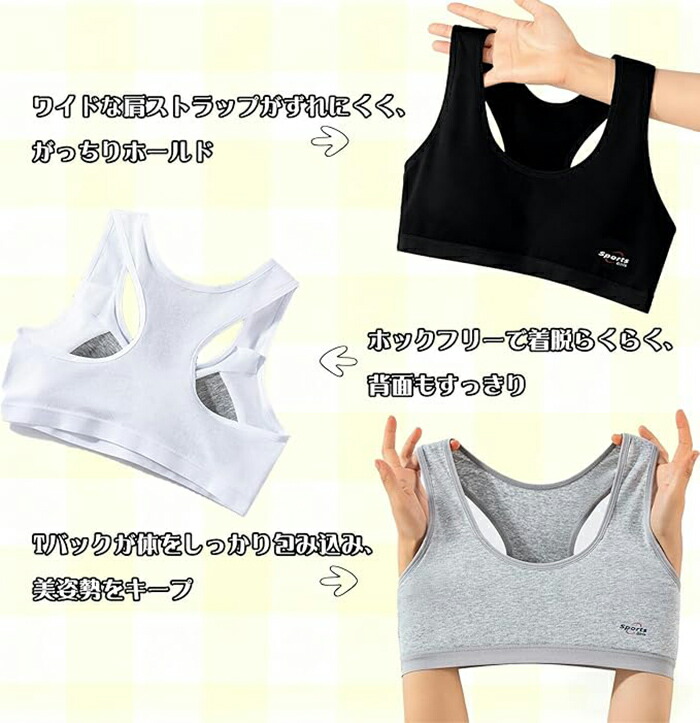 スポーツブラ ジュニア ブラ 綿素材 キッズ 下着 パジャマ ブラジャー 特集 ホワイト(1枚) グレー(1枚) ブラック(1枚) ピンク(1枚) 肌色(1枚) ブルー(1枚) ホワイト+グレー(2枚) ホワイト+ブラック(2枚) ホワイト+ピンク(2枚) ホワイト+肌色(2枚) ホワイト+ブルー(2枚) グレー+ブラック(2枚) グレー+ピンク(2枚) グレー+肌色(2枚) グレー+ブルー(2枚) ブラック+ピンク(2枚) ブラック+肌色(2枚) ブラック+ブルー(2枚) ピンク+肌色(2枚) ピンク+ブルー(2枚) 肌色+ブルー(2枚)