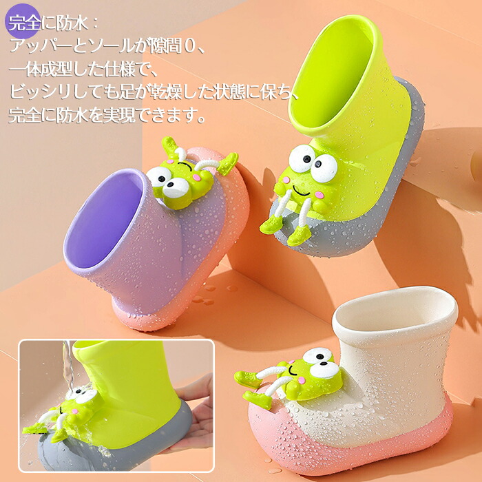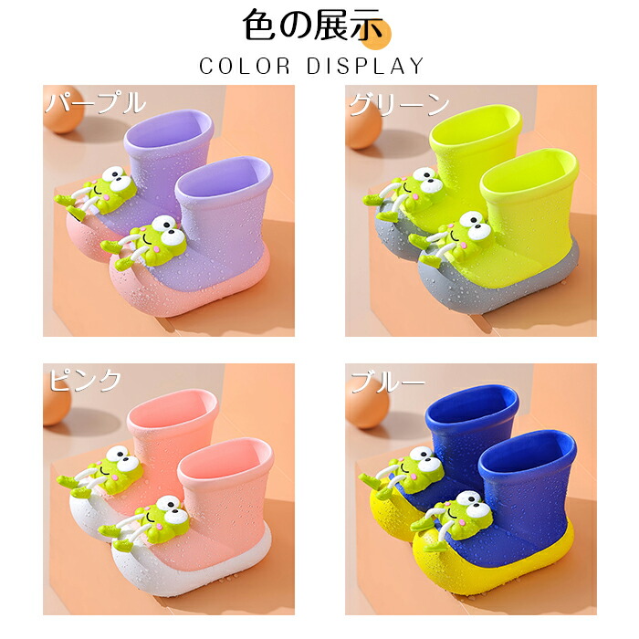 レインシューズ キッズ カエル レイン キッズ 靴 レインシューズ 長靴 新作 グリーン ピンク ブルー パープル 15cm 16cm 17cm 18cm 19cm 20cm