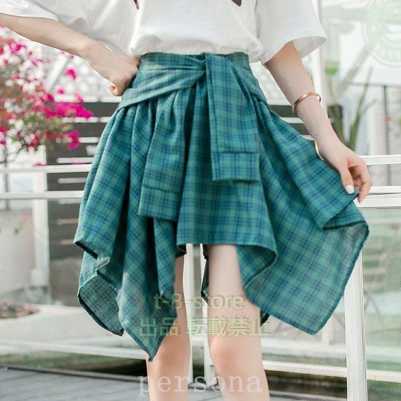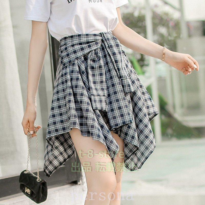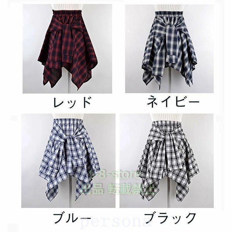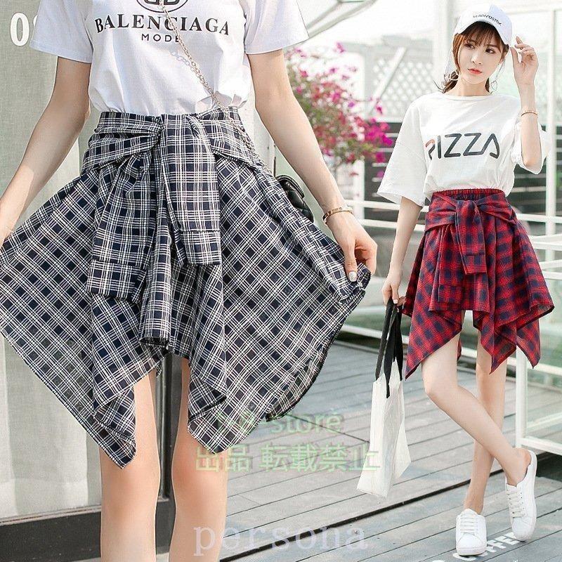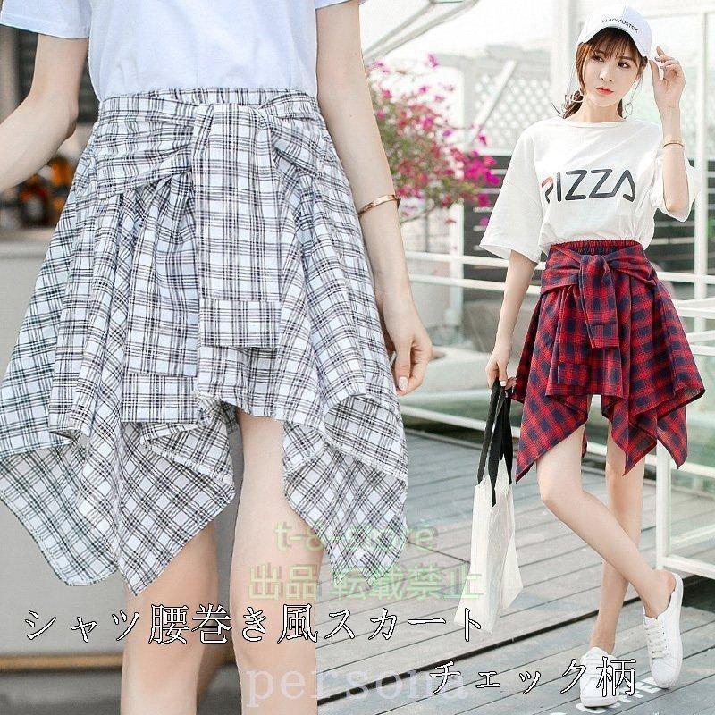 シャツ腰巻き風スカート チェック柄 レ トップス シャツ ブラウス 超目玉商品 ブルー ネイビー レッド ブラック