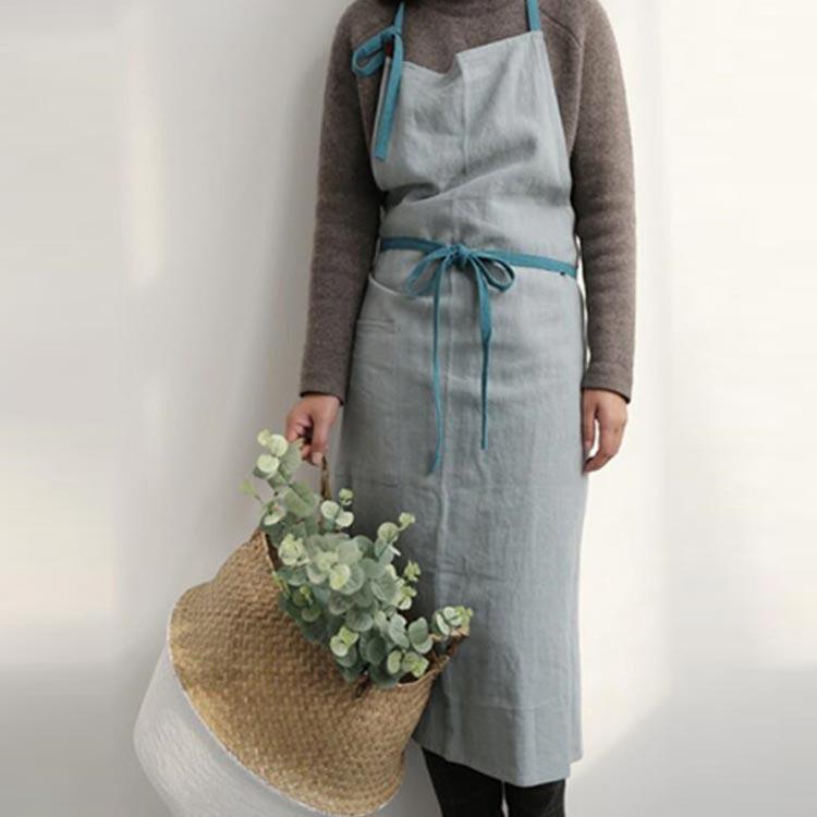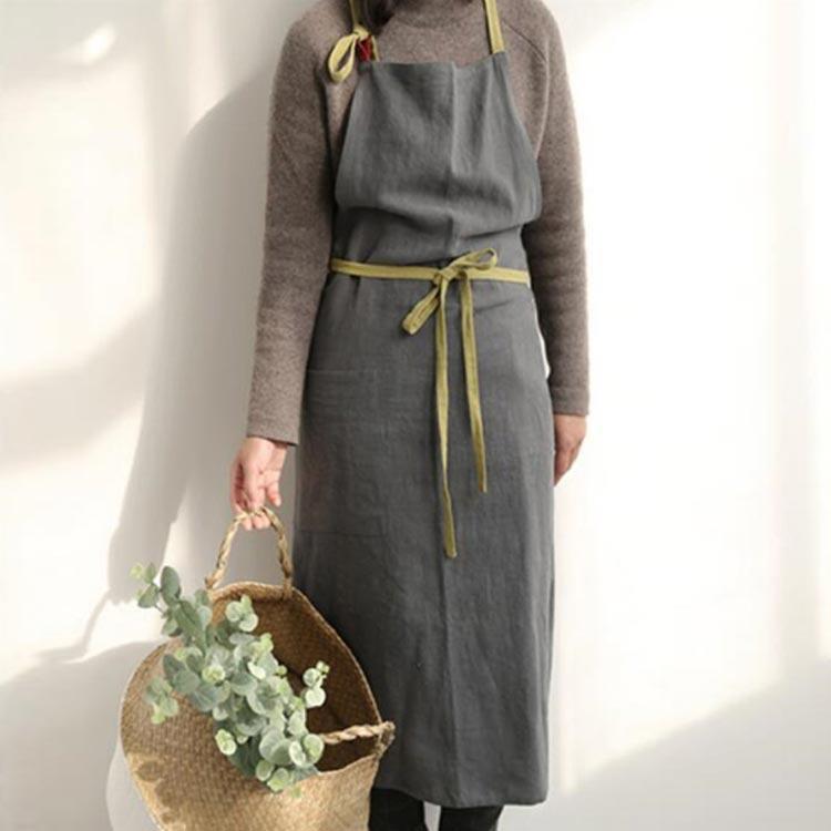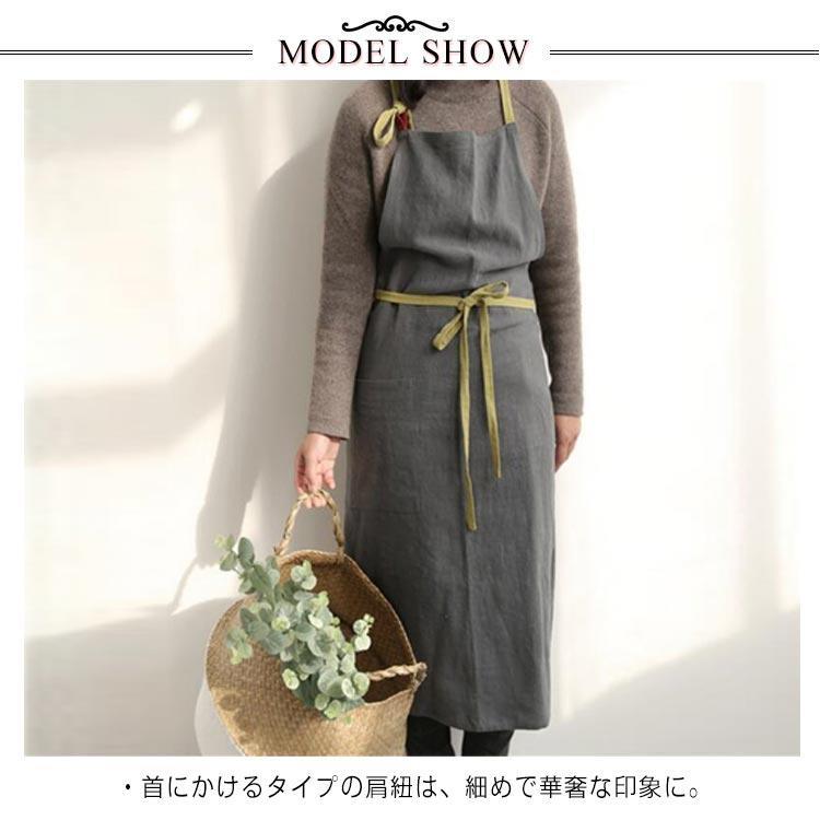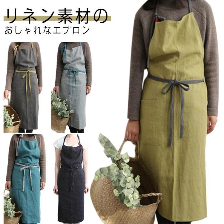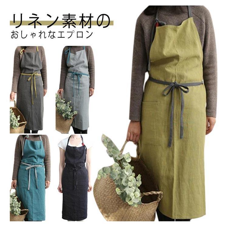 レディース 麻 サロン おしゃれ リネ ダークグレー グレー グリーン ブルー ブラック