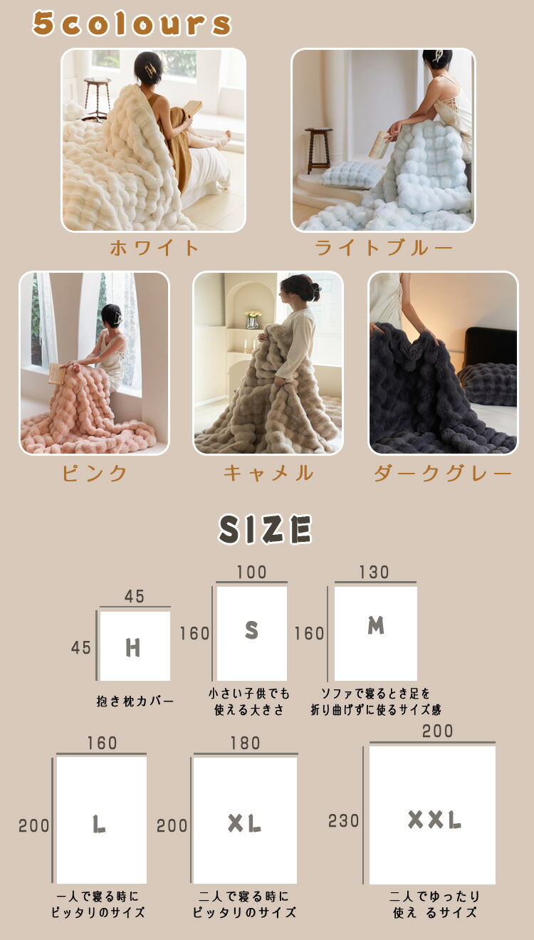 TVブランケット 寝具 毛布 ブランケット 豊富 ホワイト ライトブルー ピンク キャメル ダークグレー H(45×45) S(100×160) M(130×160) L(160×200) XL(180×200) XXL(200×230)