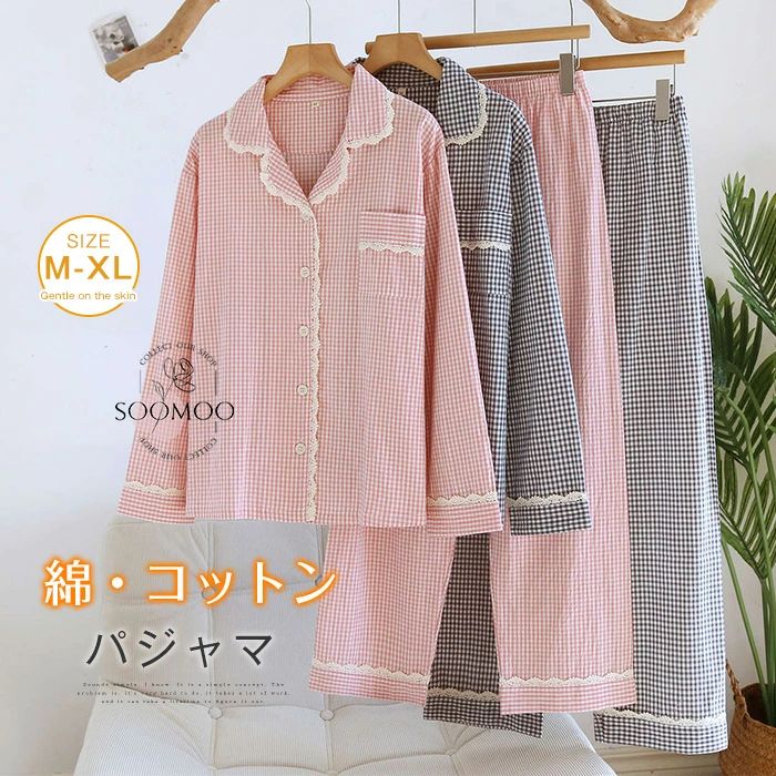 パジャマ 綿100% ルームウェア レ レディース ナイトウェア ルームウェア ルームウェア 上下セット 通販 ブラック ピンク M L XL