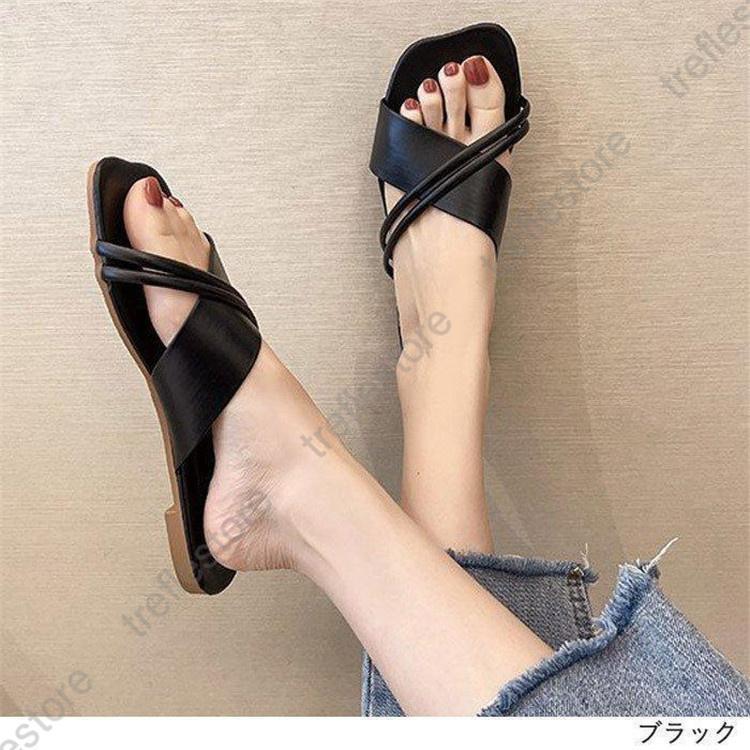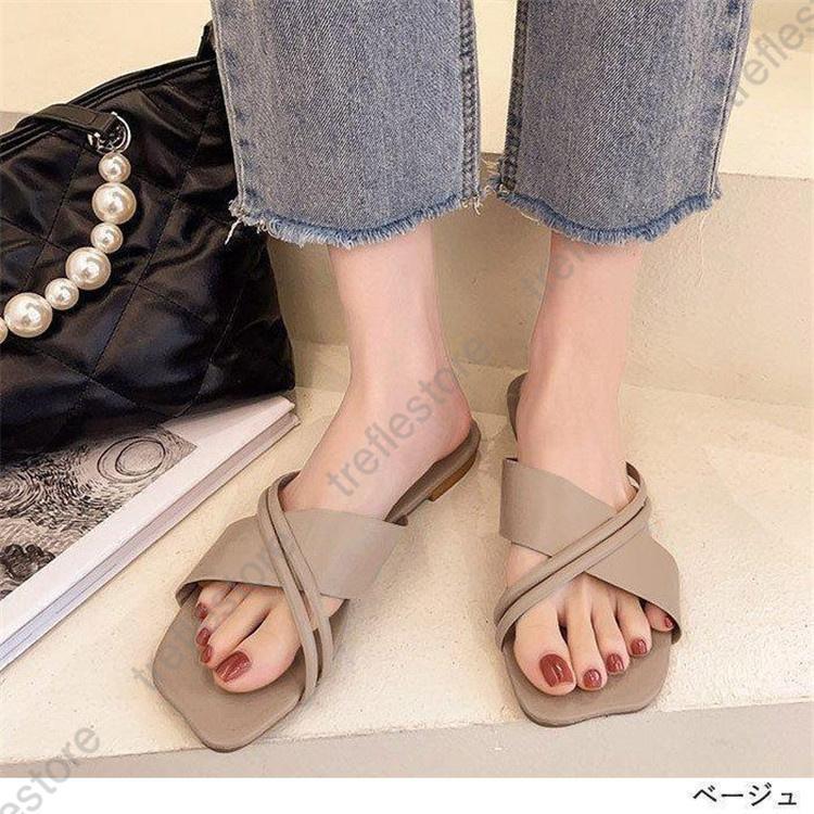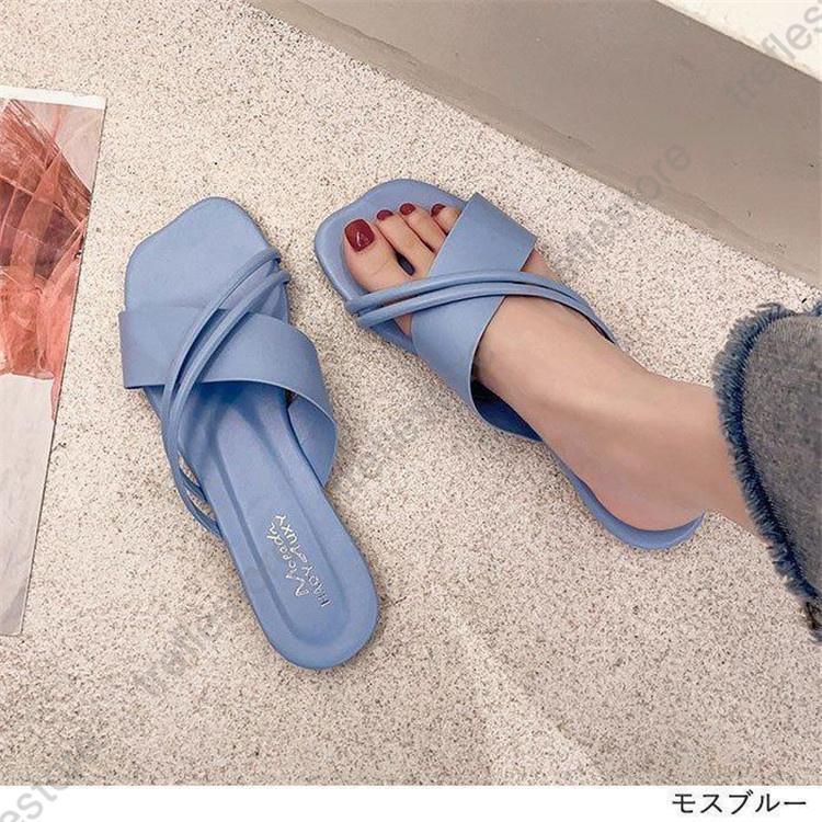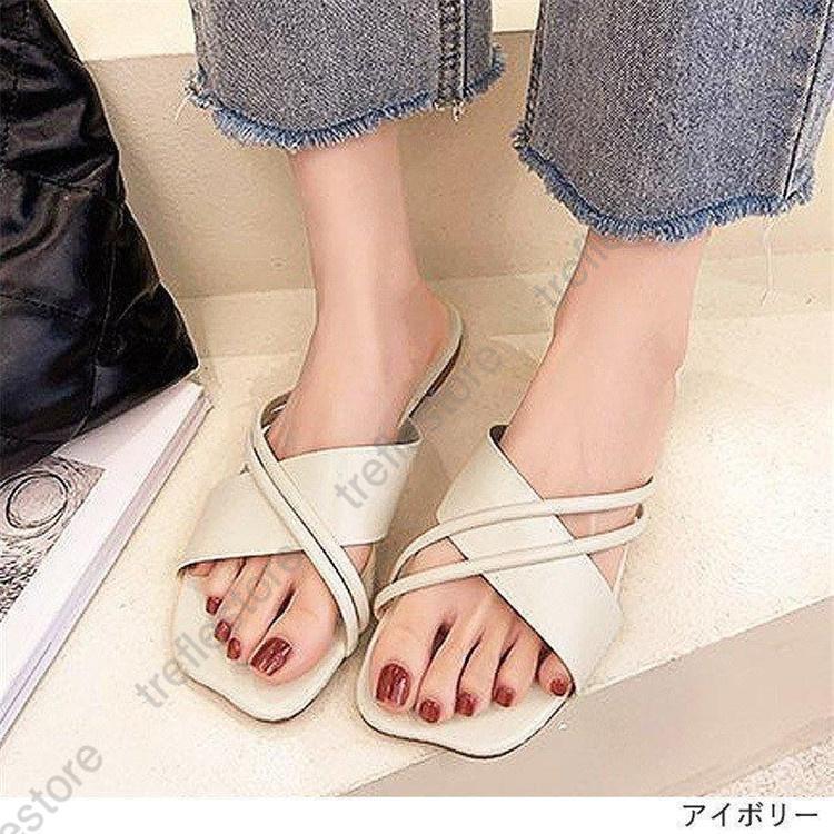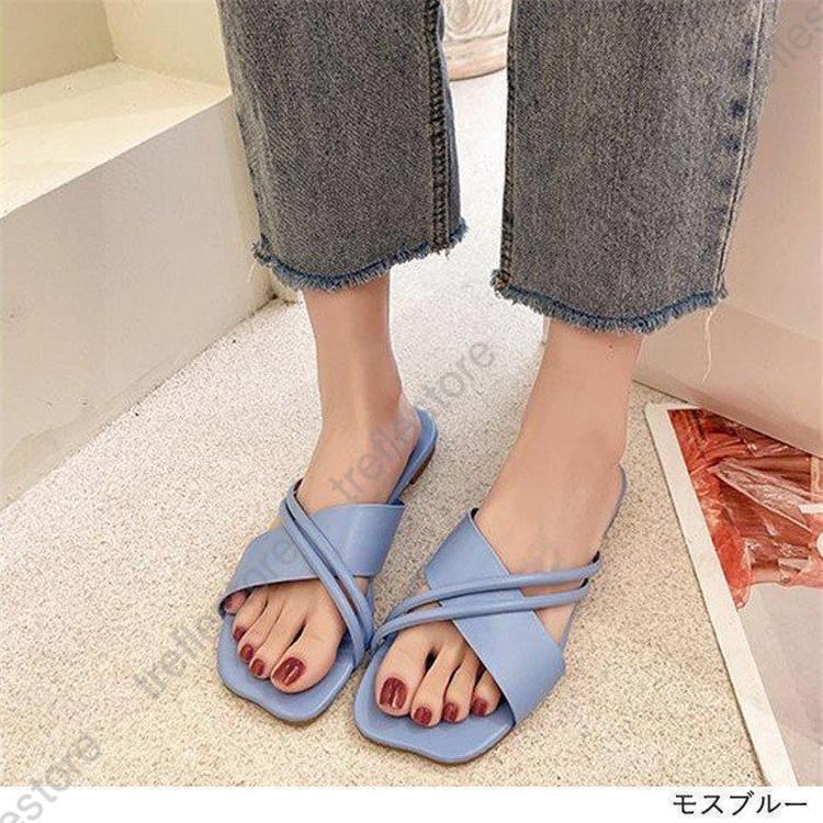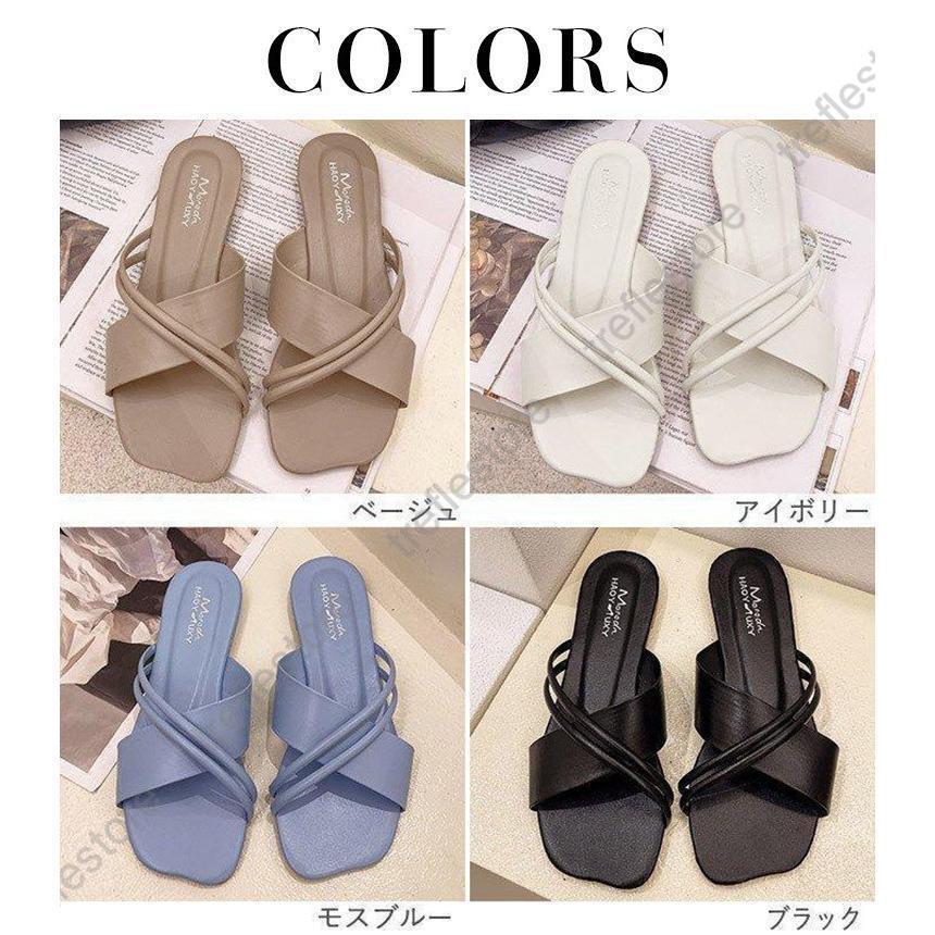 サンダル スクエアトゥ ミュール フラ 靴 通販 ベージュ アイボリー モスブルー ブラック 【35】22.0-22.5cm 【36】22.5-23.0cm 【37】23.0-23.5cm 【38】23.5-24.0cm 【39】24.0-24.5cm 【40】24.5-25.0cm