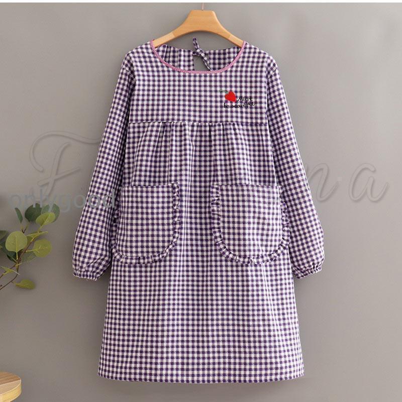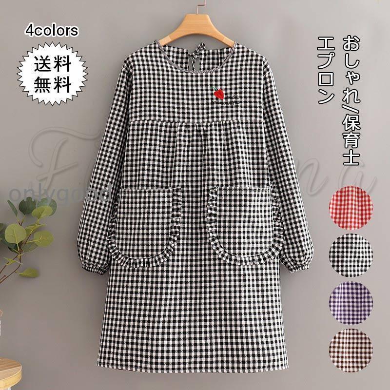 割烹着 おしゃれ エプロン 袖付き れ ワンピース 新登場! レッド ブラック パープル コーヒー色