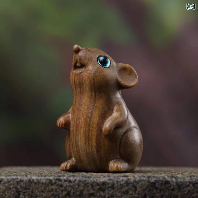 置物 インテリア 木彫り ねずみ 無垢 A:8 cm B:4-5 cm C:7 cm D:7 cm 青い目 E:6 cm