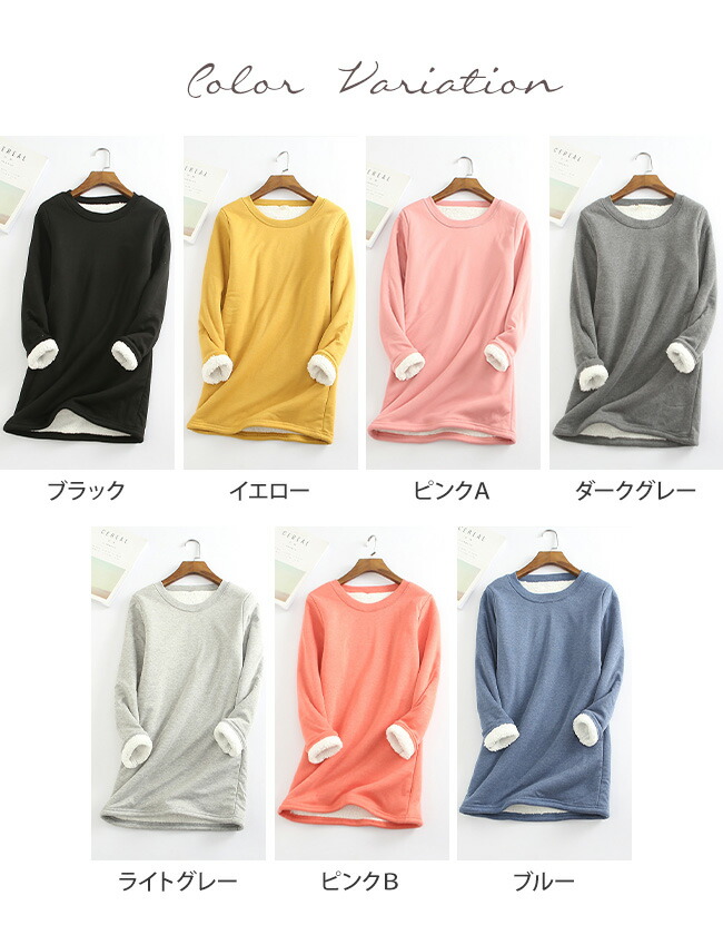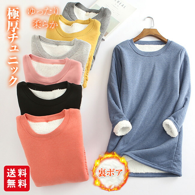 極厚チュニック 裏起毛 カットソー レ レディースファッション 特集 ブラック イエロー ピンクA ダークグレー ライトグレー ピンクB ブルー S M L XL 2XL 3XL