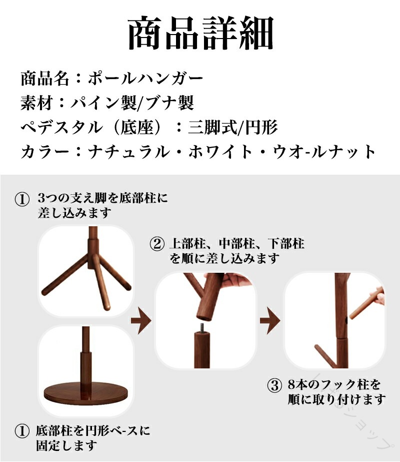 ポールハンガー コートハンガー ラック ナチュラル ウォールナット ホワイト パイン製三脚ベース パイン製円形ベース ブナ製三脚ベース ブナ製円形ベース