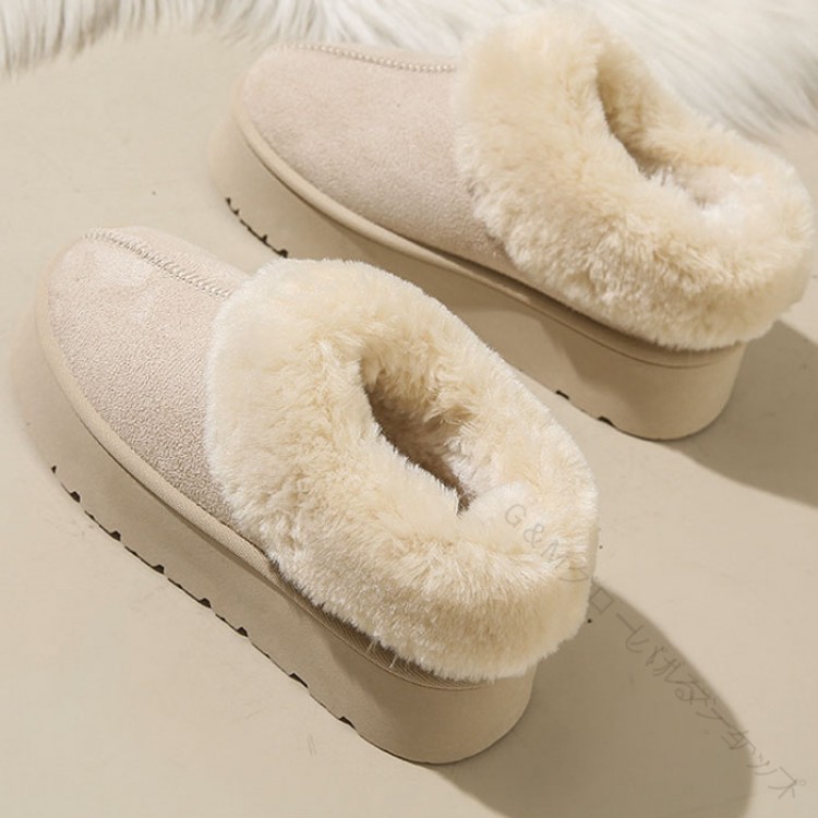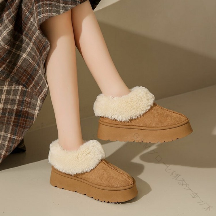 ムートンンブーツ レディース 冬のおしゃれ 防寒シューズ あったかブーツ 秋冬ファッション 厚底スリッポン フェイクファー 歩きやすい 軽量ブーツ フルームシューズ もこもこデザイン 防寒対策 裏起毛
