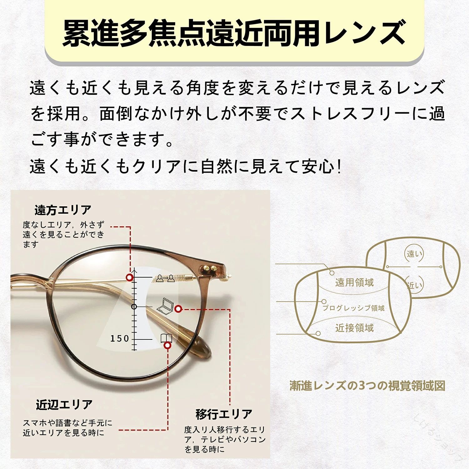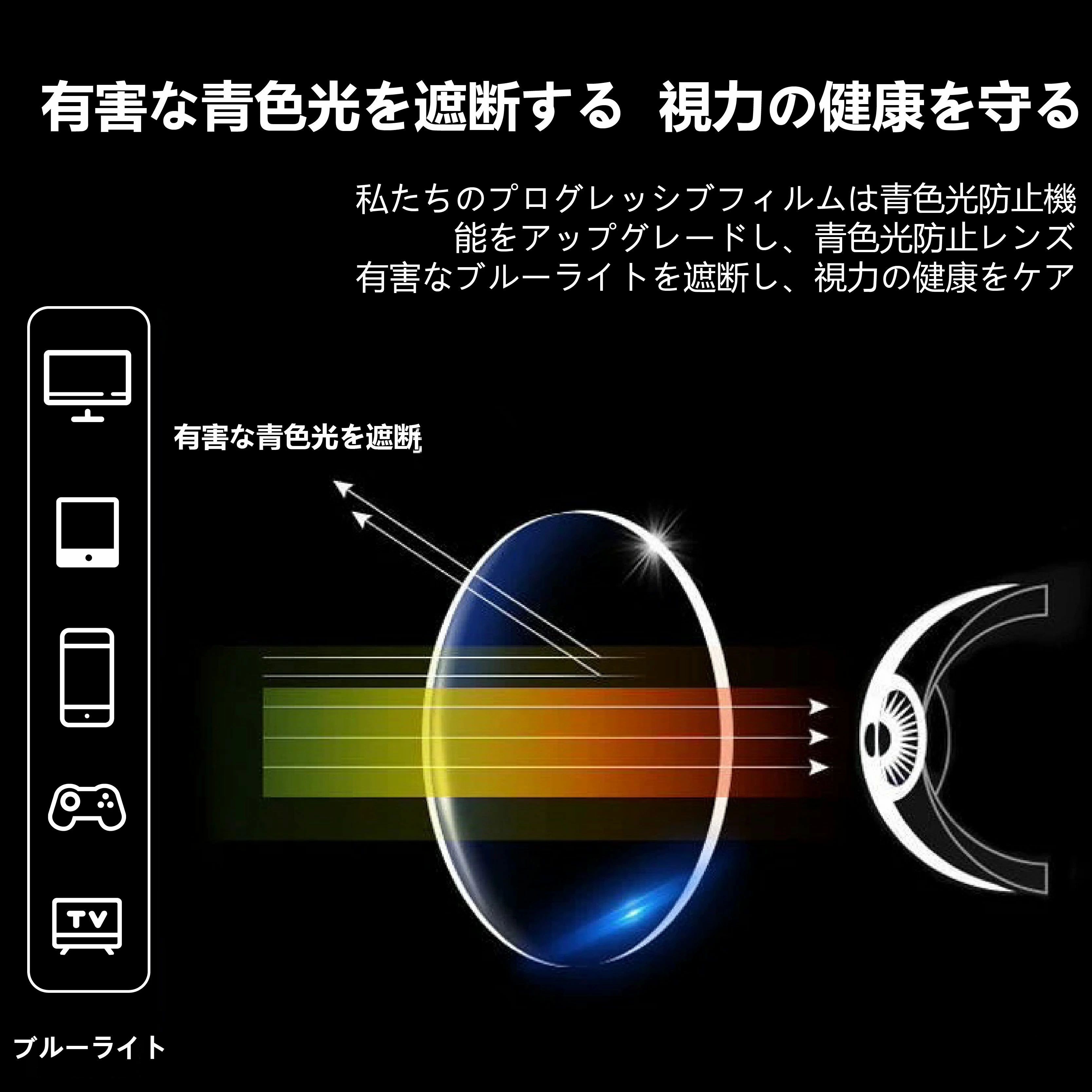 老眼鏡 多焦点レンズ 遠近両用 疲れ目軽減 ブルーライトカット 累進レンズ 快適視界 オールインインワン メガネ 紫外線カット