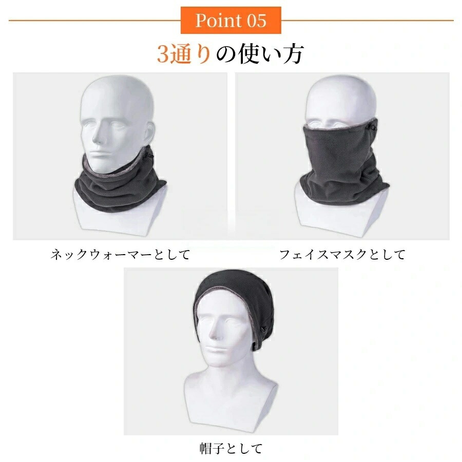 【多機能・オシャレで活躍】ネックガード(ネックウォーマー)、フェイスガード(フェイスウォーマー)、帽子として使用できます。シンプルなデザインで、いろいろな服に合わせやすくて、もっとファッション感を増やします。秋や冬のツーリングに適しており、首、顔、耳を寒さから守ります。寒い朝 通勤、自転車 通勤、自転車で 通学 子供、冬の ランニング、釣り などでも、冷気に強く、保温に最適です。