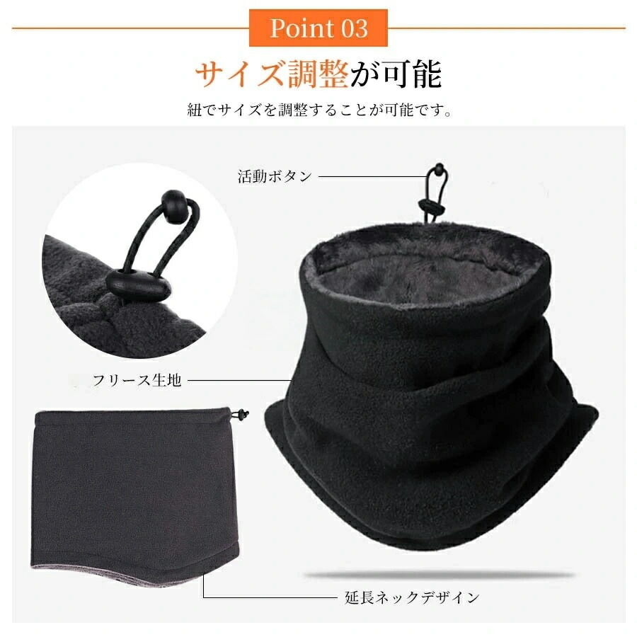 【調節コードつき・男女兼用】束縛がなくて、顔を締めつけません。調節コードがあるので、サイズを調整できて、運動する時に自由に動いてもずれる心配はありません。どんなスタイルにも合わせることが出来る、フリーサイズで男女問わずに装着できるし、防寒だけでなく、秋冬季節首元のアクセントとして大活躍!