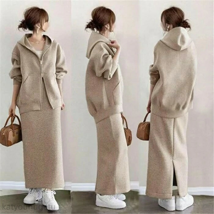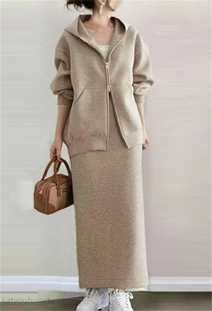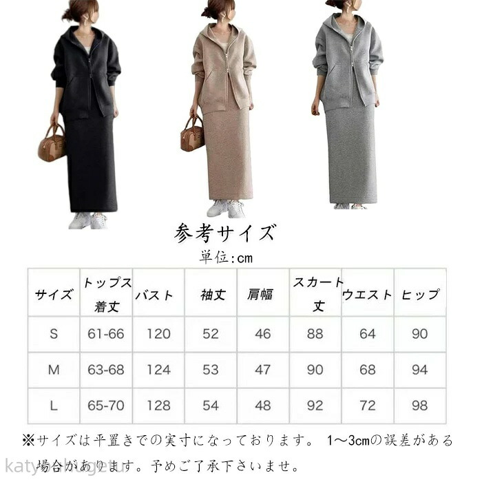 セットアップ レディース パーカー ス レディースファッション 通販 ブラック グレー カーキ S M L