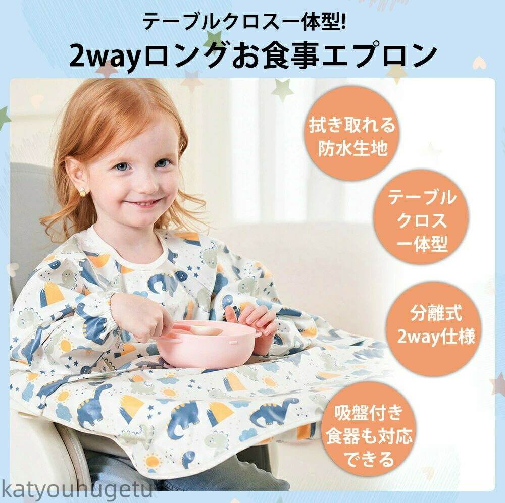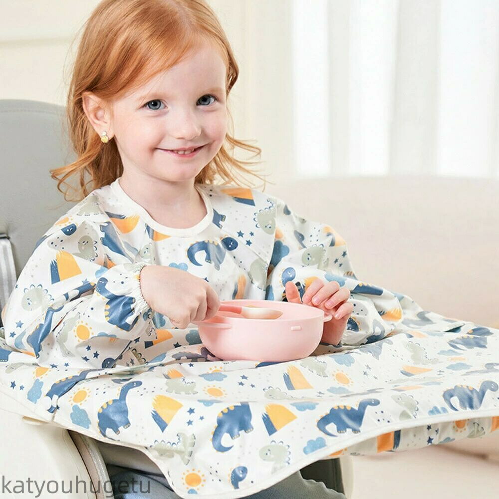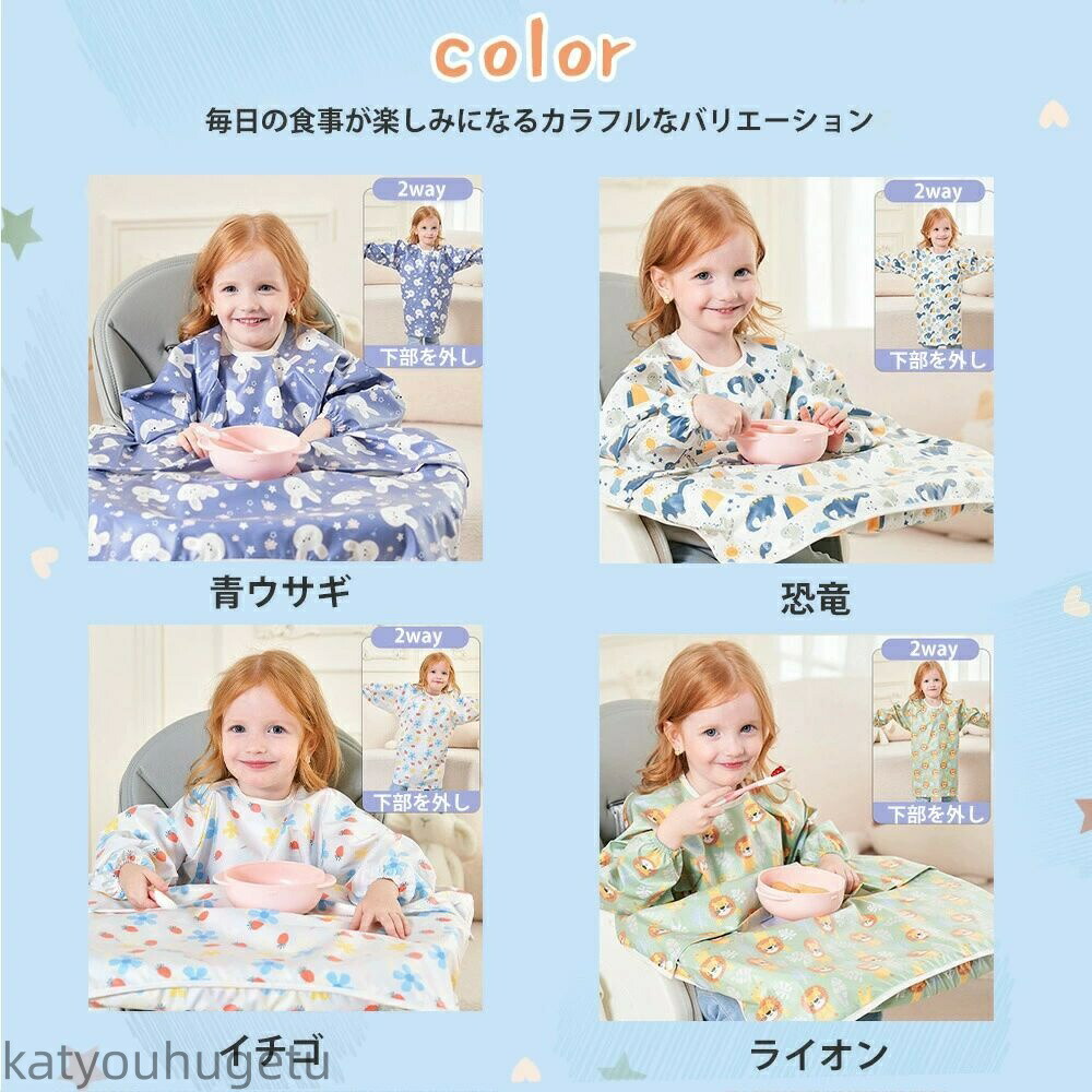 長袖 防水 タイプ 食べこぼし エプロ 青ウサギ 恐竜 イチゴ ライオン 虹 クマ 象+ライオン 白ウサギ