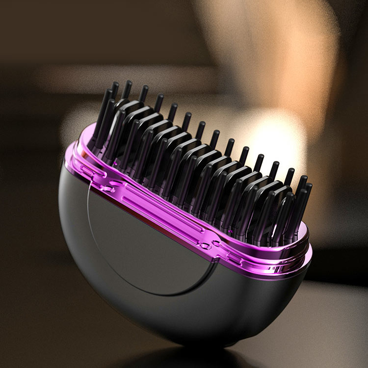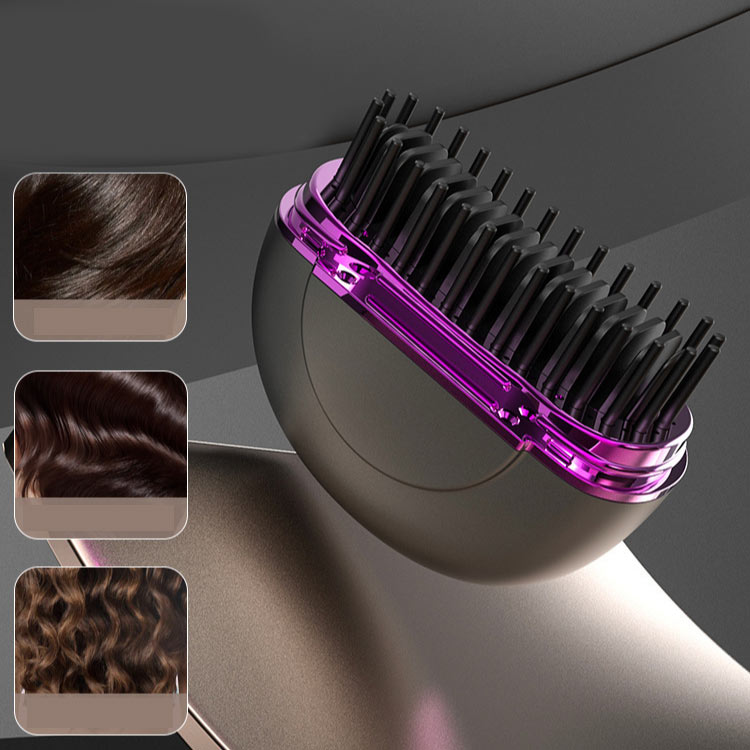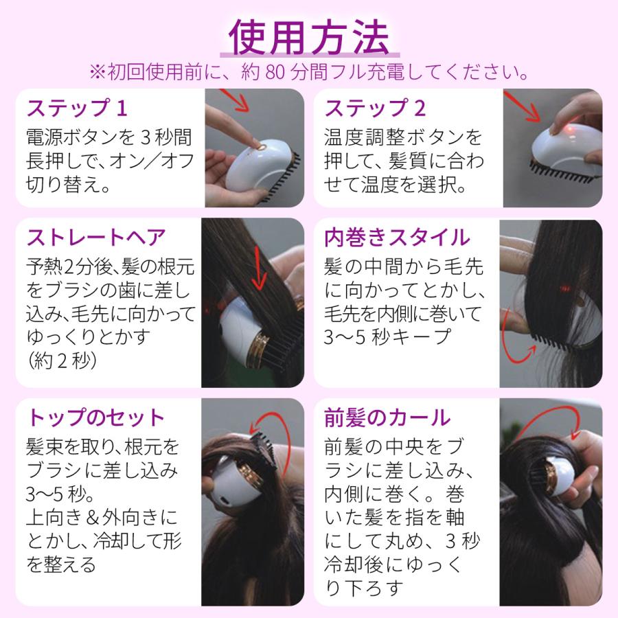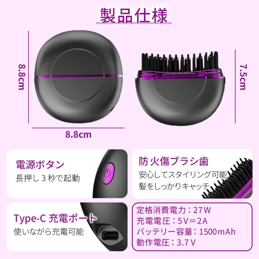 ヒートブラシ ミニ 簡単スタイリング ヘアアイロンブラシ コードレス 3段階温度調整 超軽量219g 携帯用 ポータブル 前髪 Type-C急速充電 3色 海外対応 持 ストレートブラシ