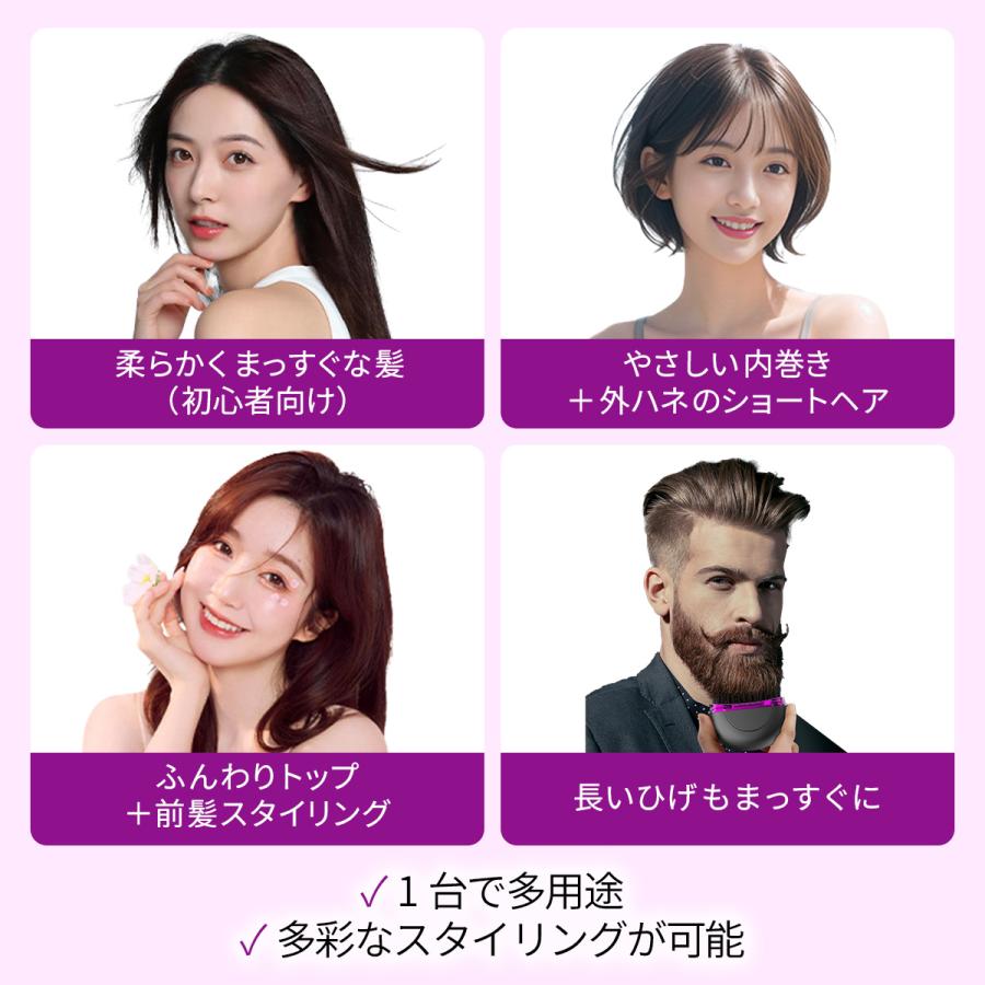 コーム型のプレート設計により、髪を挟まずに自然なストレートヘアを実現します。特に顔周りや前髪など、細かい部分にも対応できるデザインが魅力です。何度もプレスする必要がないため、髪への負担も軽減されます。自然な仕上がりを求める方に最適なアイテムです。