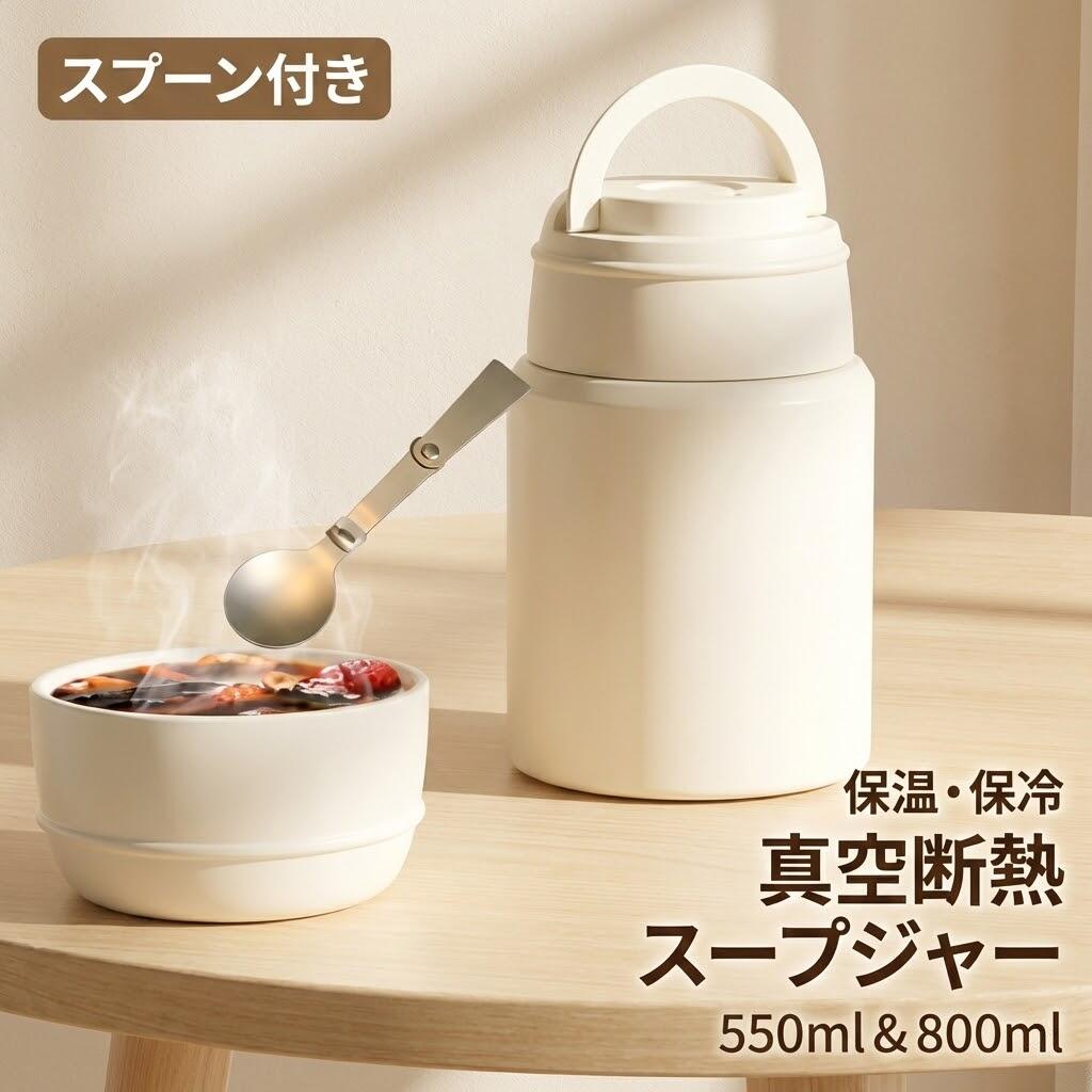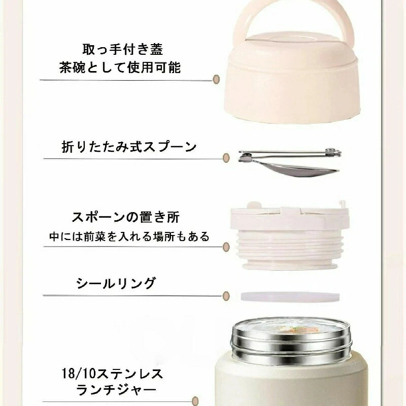 弁当箱 800ml大容量 スープジャー 弁当箱 水筒 保温ランチジャー 特集 ベージュ ブラック 550ml(内容量500ml) 800ml(内容量750ml)