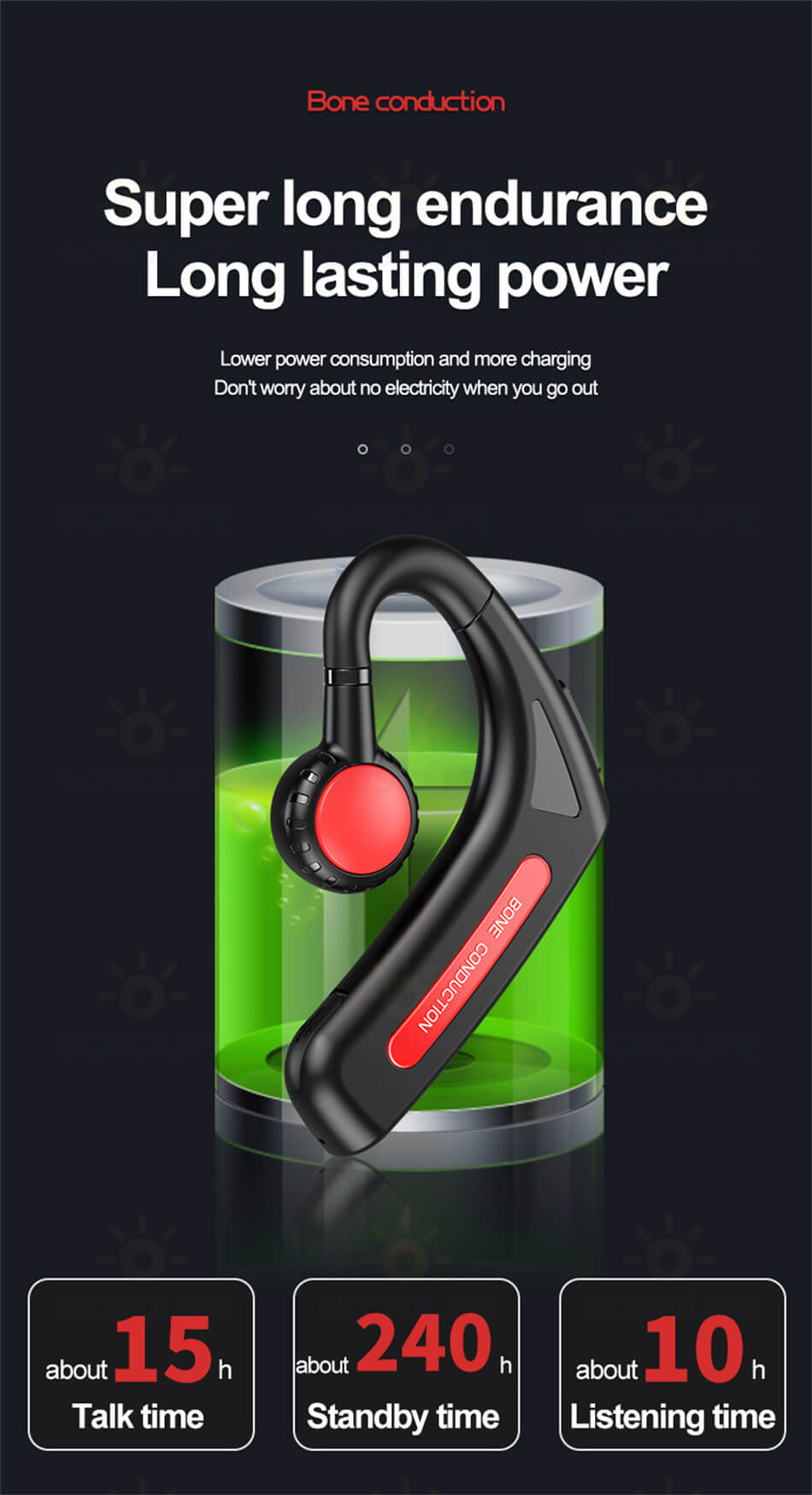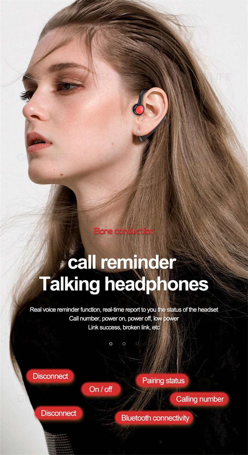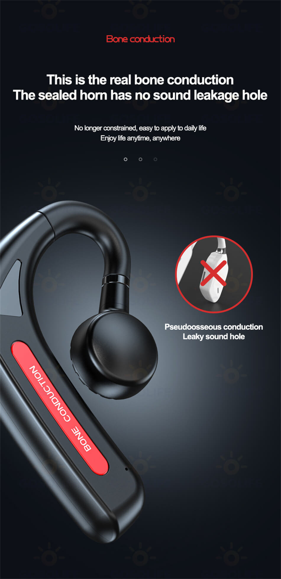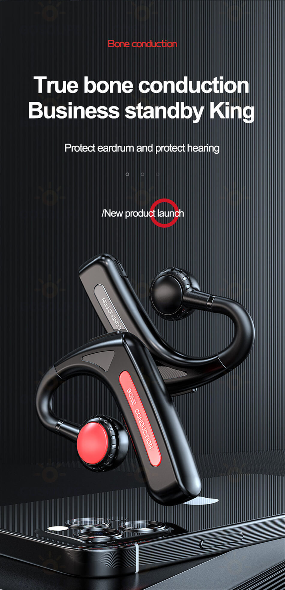 骨伝導 ワイヤレスイヤホン骨伝導 イヤ ブラック ブルー レッド グリーン
