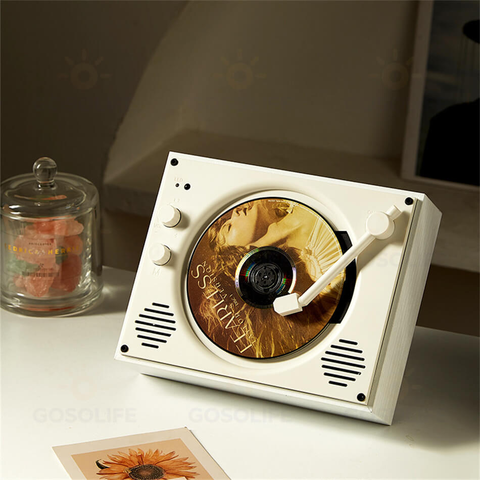 CD プレーヤーは、クラシックなレトロ蓄音機のデザインが特徴で、リビングルーム、ダイニングルーム、ベッドルーム、ジム、または好きな場所に配置できます。