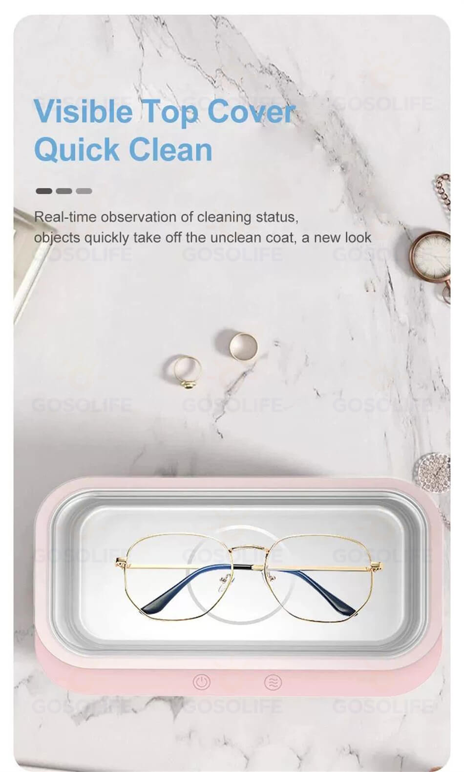 この超音波洗浄器は蓋が透明なので、洗浄効果も一目で分かります。400mlの容量が、日常によく使うメガネ、ジュエリー、櫛、歯ブラシ、時計バンドなどの小物洗浄には便利です。